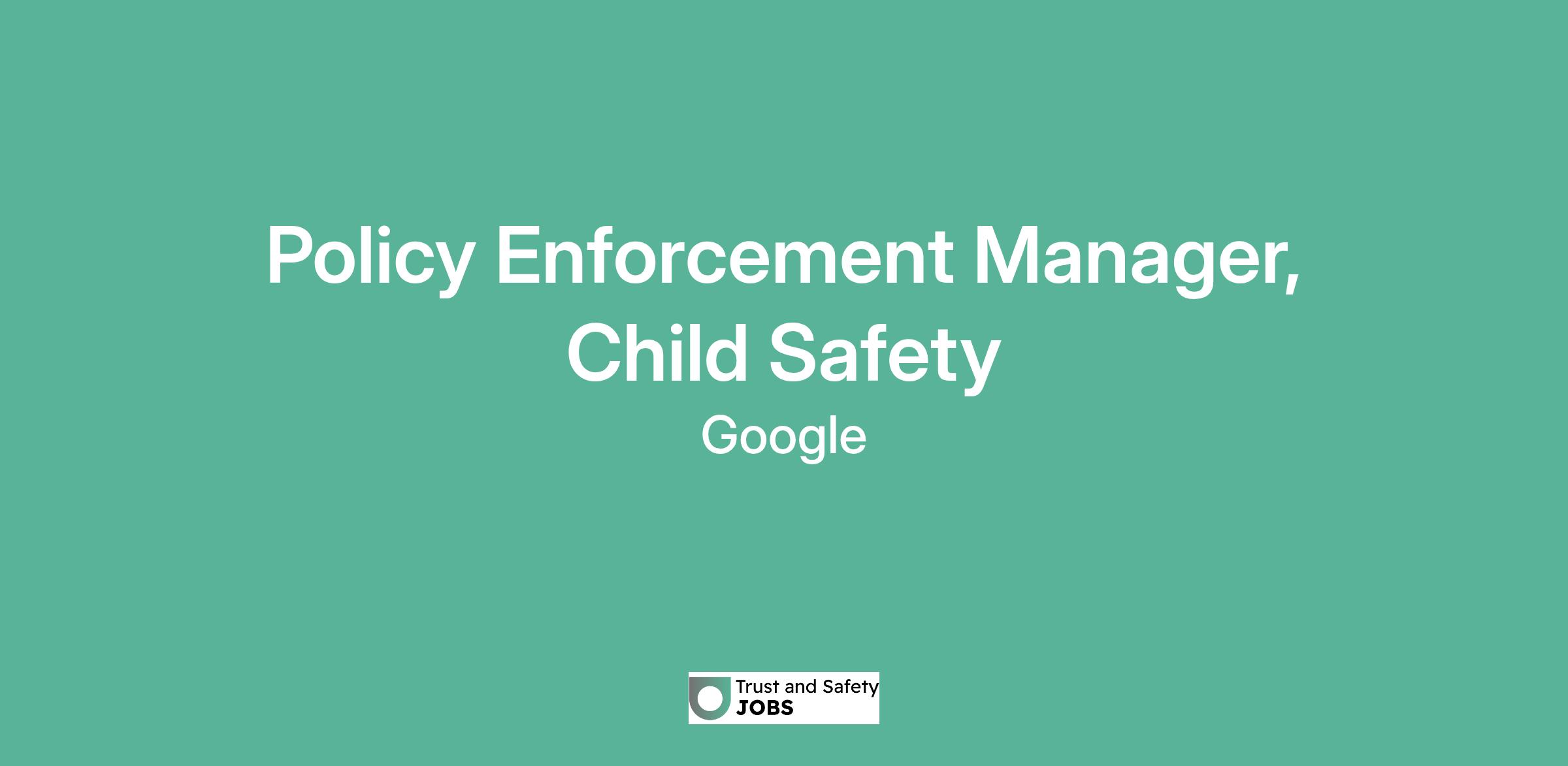 Policy Enforcement Manager, Child Safety