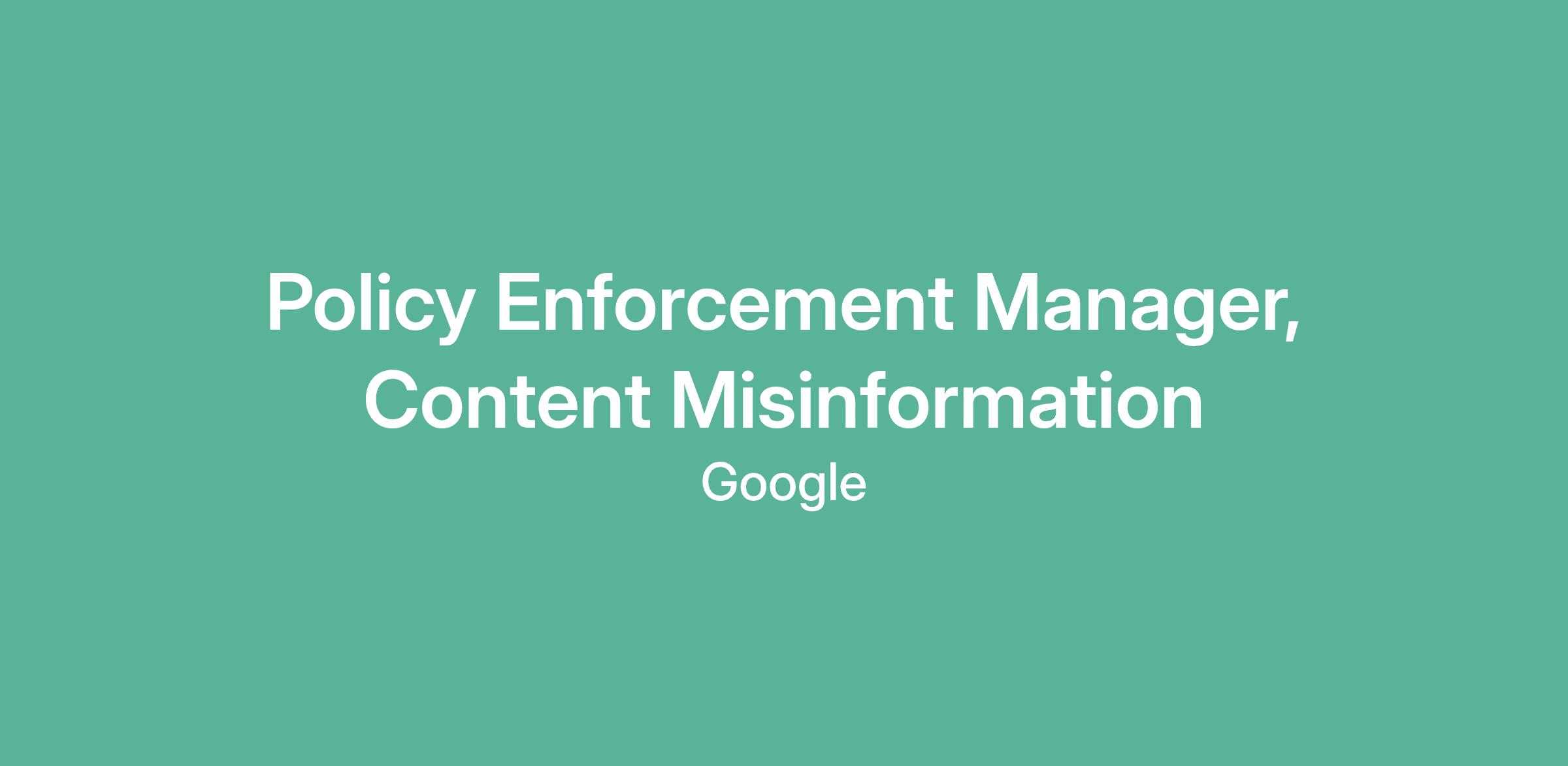 Policy Enforcement Manager, Content Misinformation