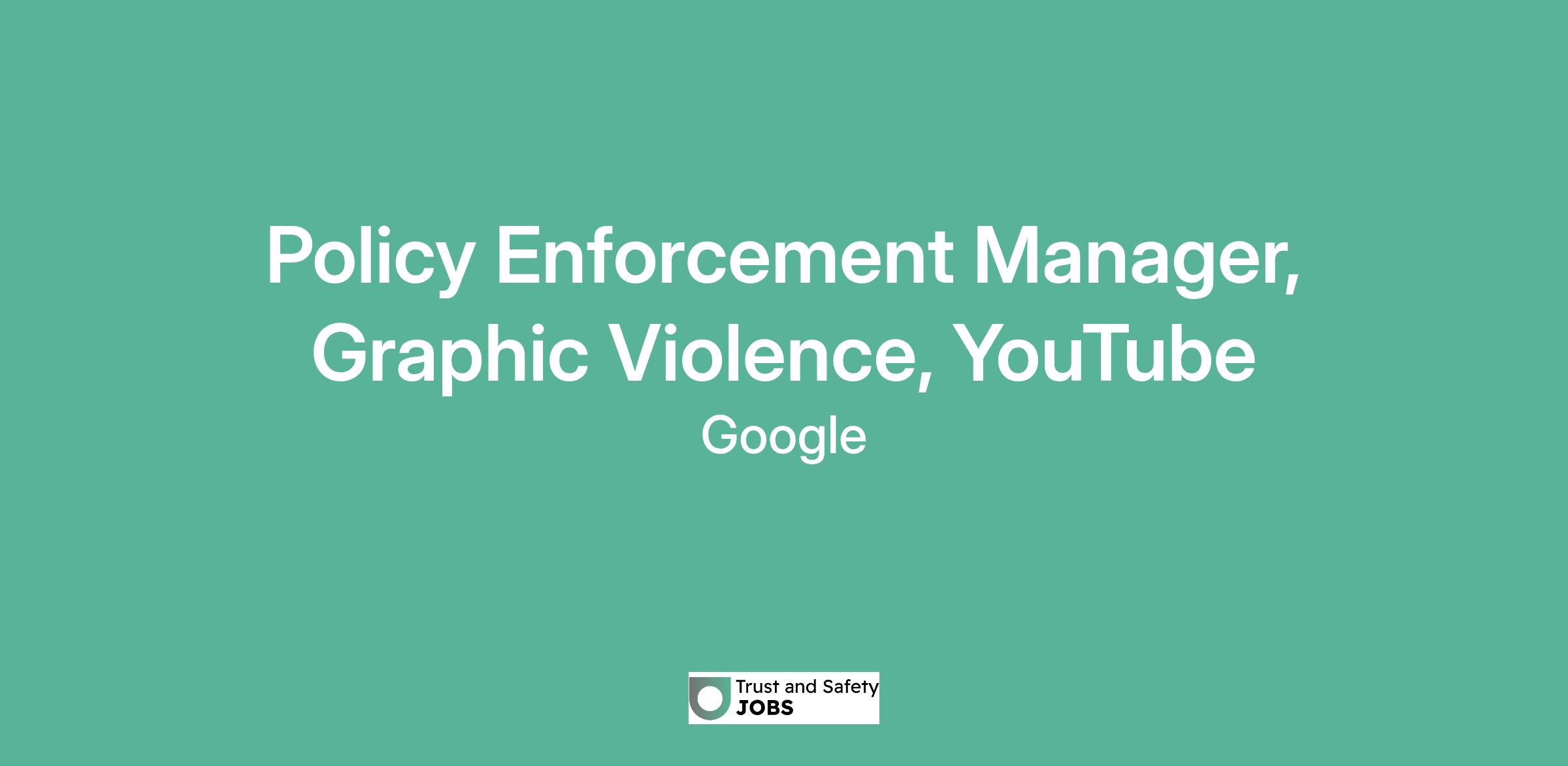 Policy Enforcement Manager, Graphic Violence, YouTube