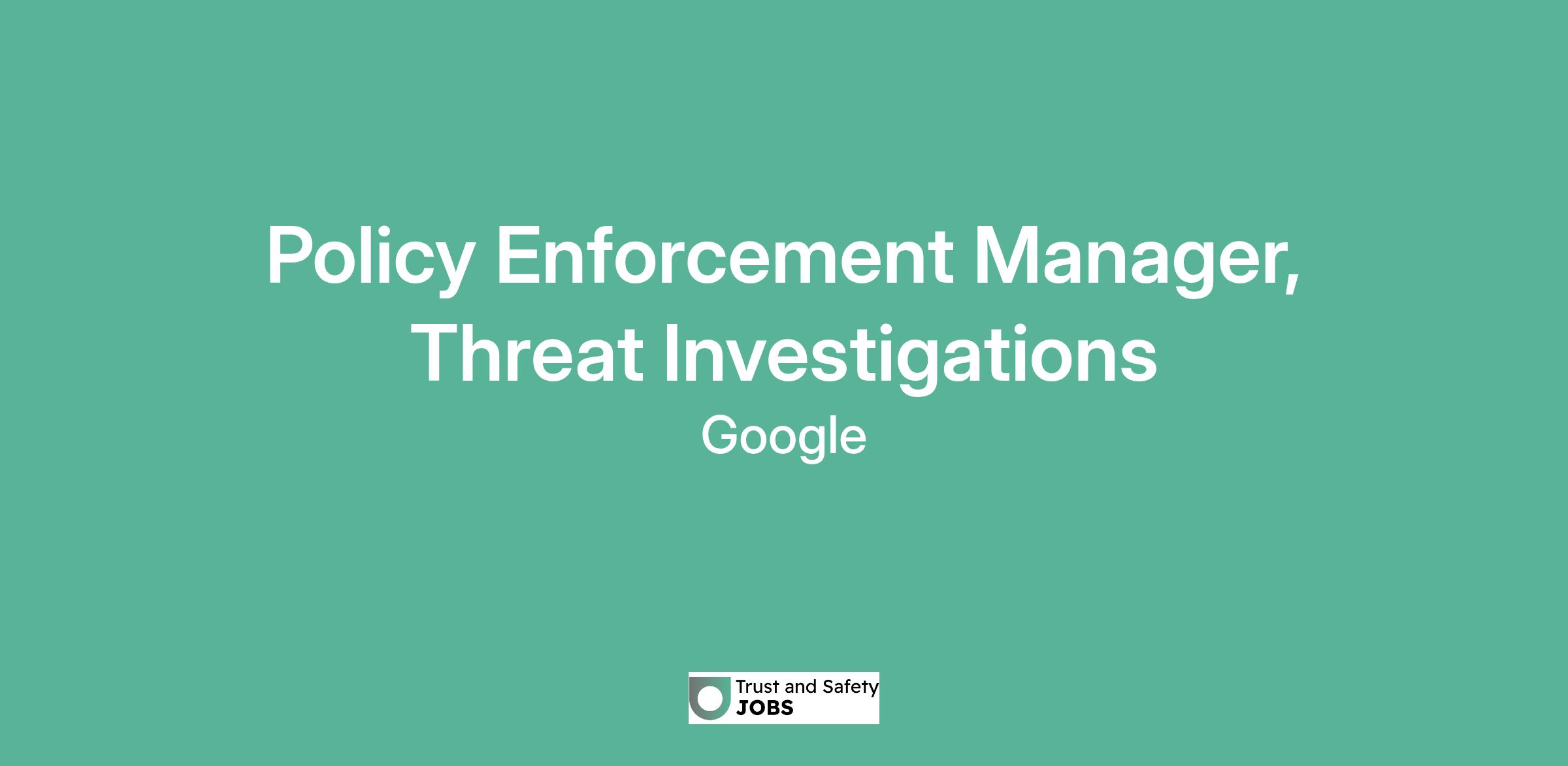 Policy Enforcement Manager, Threat Investigations