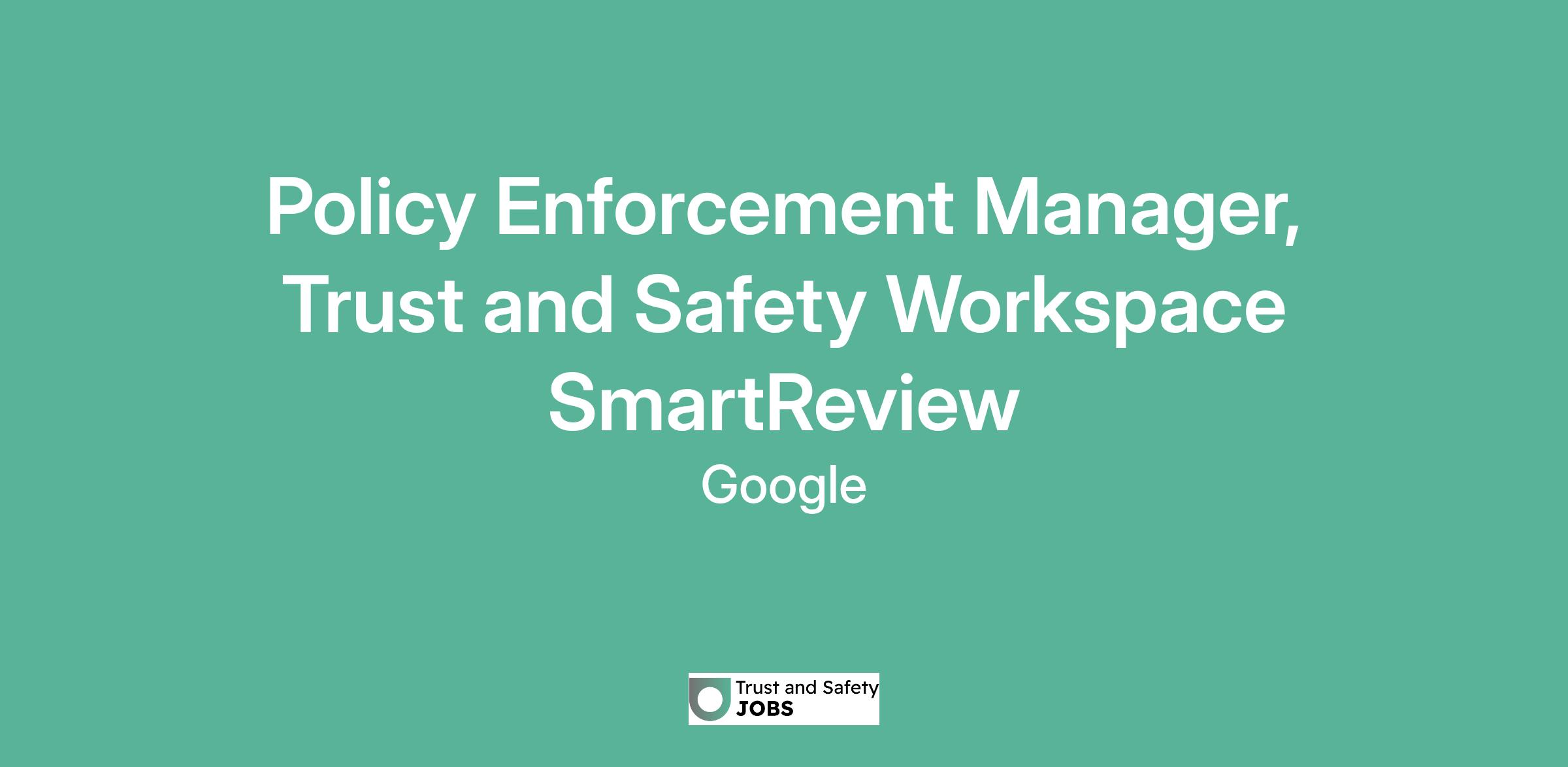 Policy Enforcement Manager, Trust and Safety Workspace SmartReview