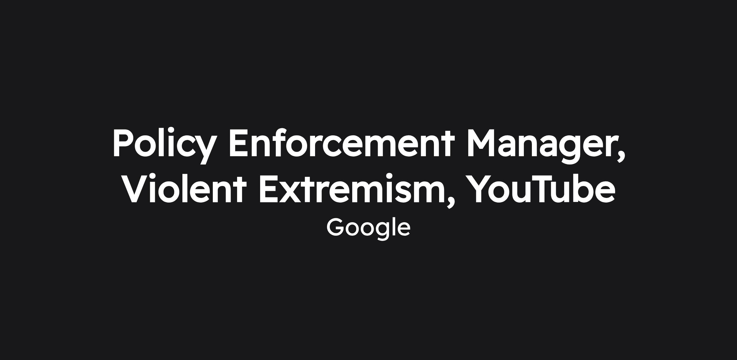 Policy Enforcement Manager, Violent Extremism, YouTube