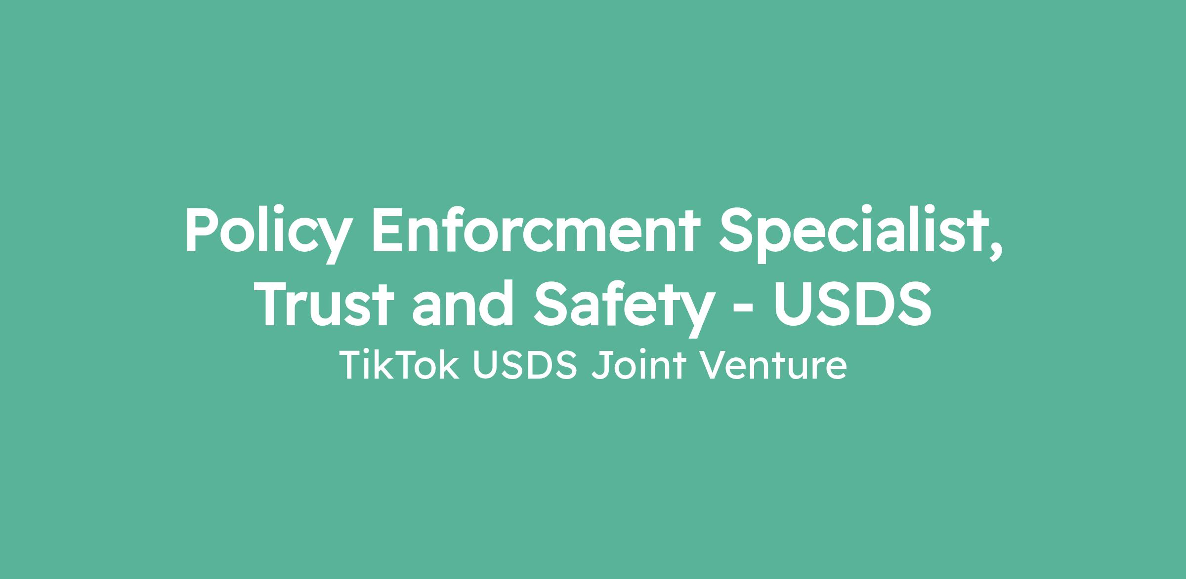 Policy Enforcment Specialist, Trust and Safety - USDS