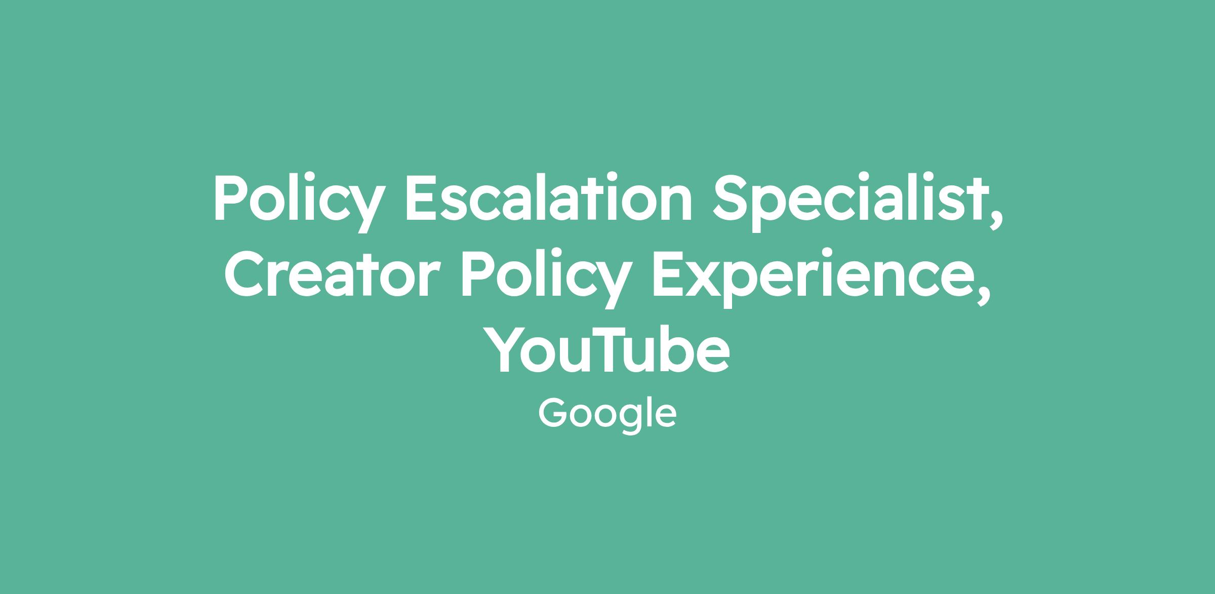 Policy Escalation Specialist, Creator Policy Experience, YouTube