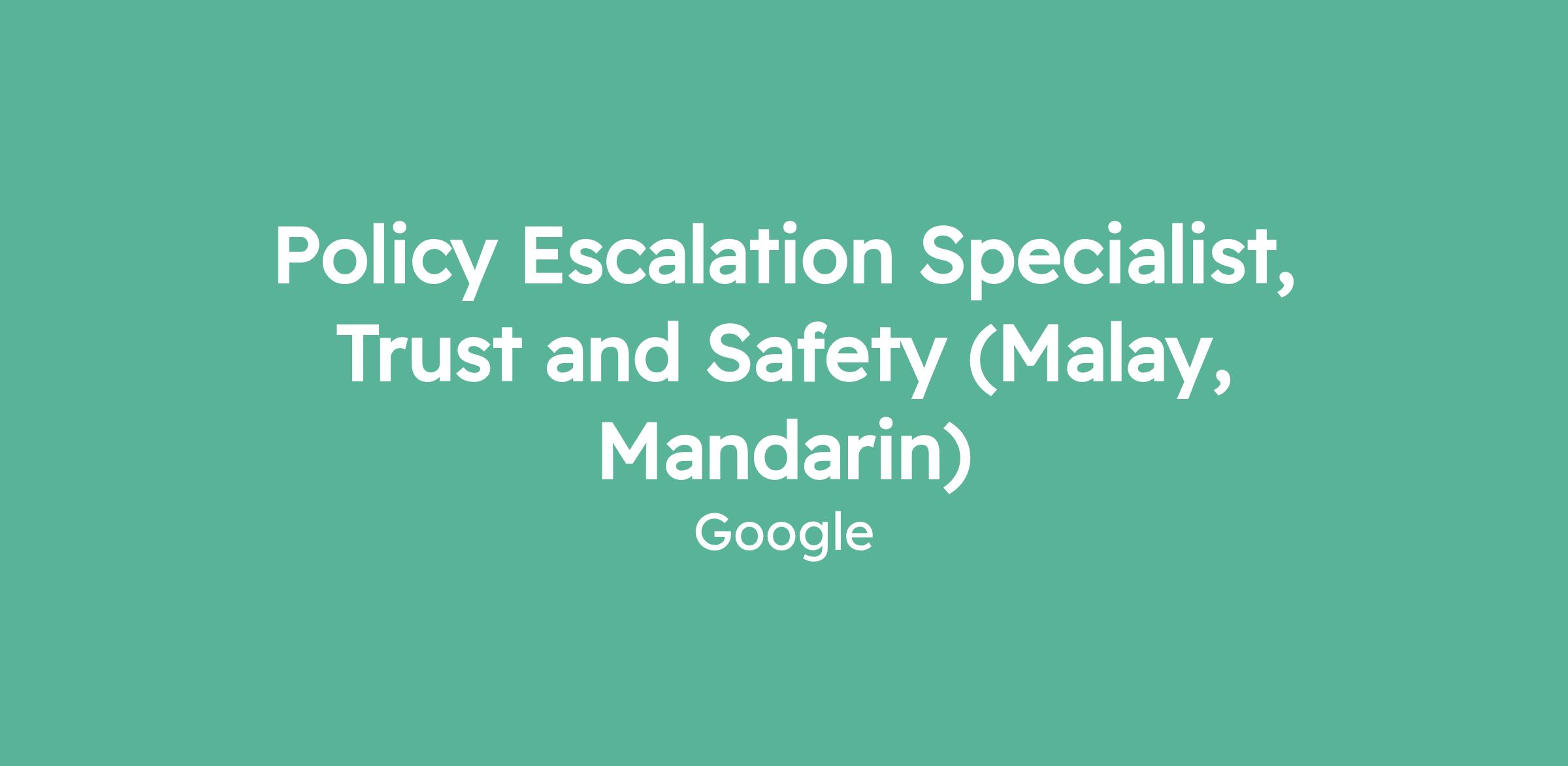 Policy Escalation Specialist, Trust and Safety (Malay, Mandarin)