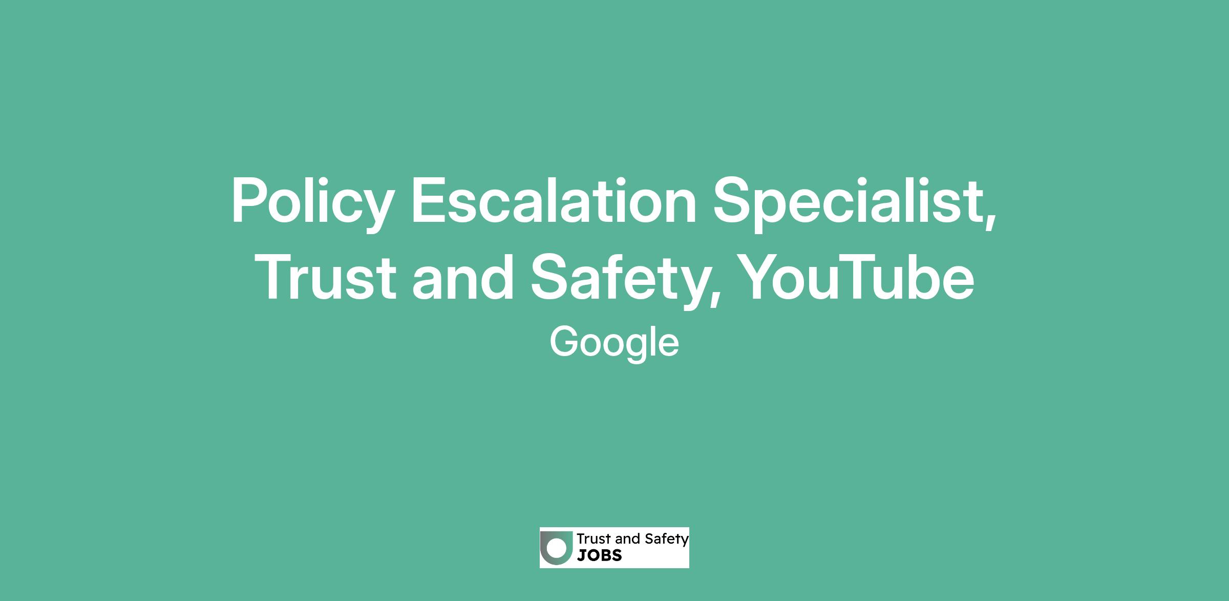 Policy Escalation Specialist, Trust and Safety, YouTube