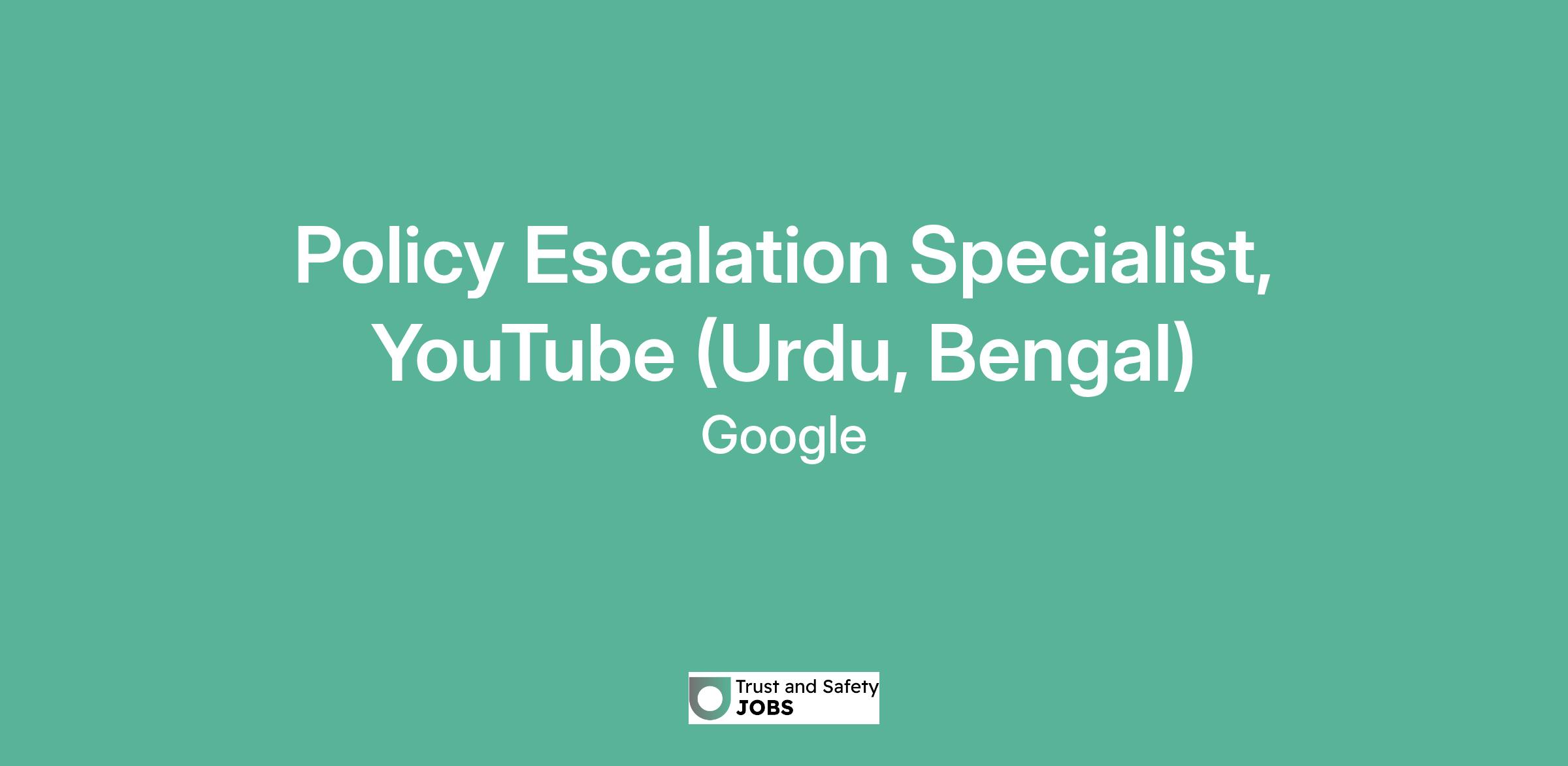 Policy Escalation Specialist, YouTube (Urdu, Bengal)