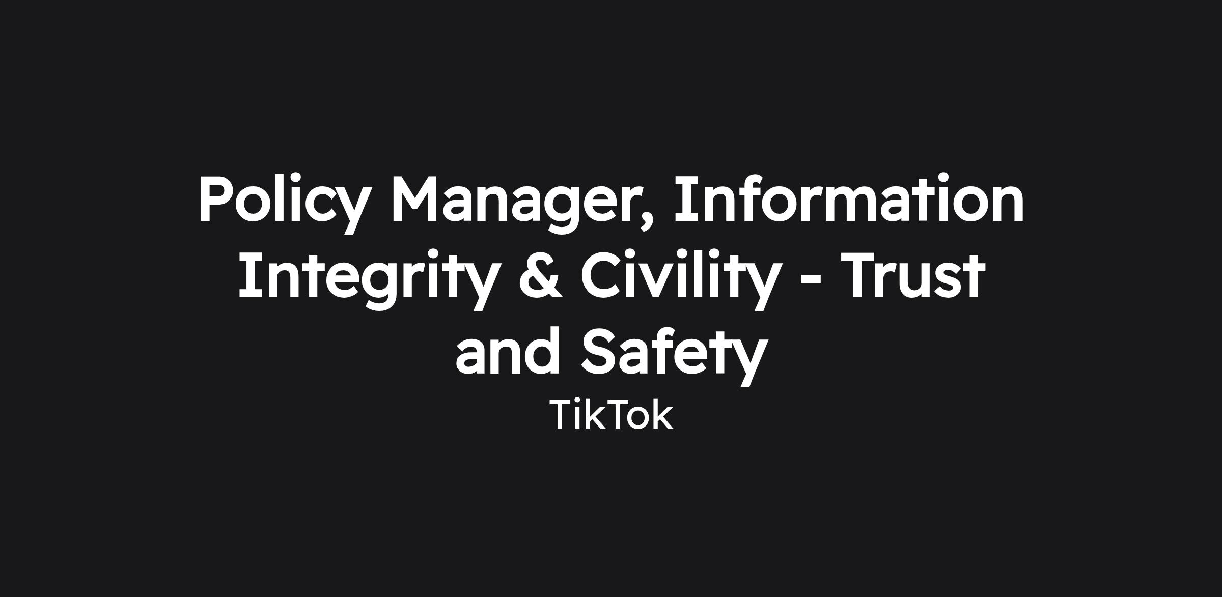 - Craft new and/or update existing content policies that focus on Information Integrity & Civility (IIC) for our global community on the TikTok platform.