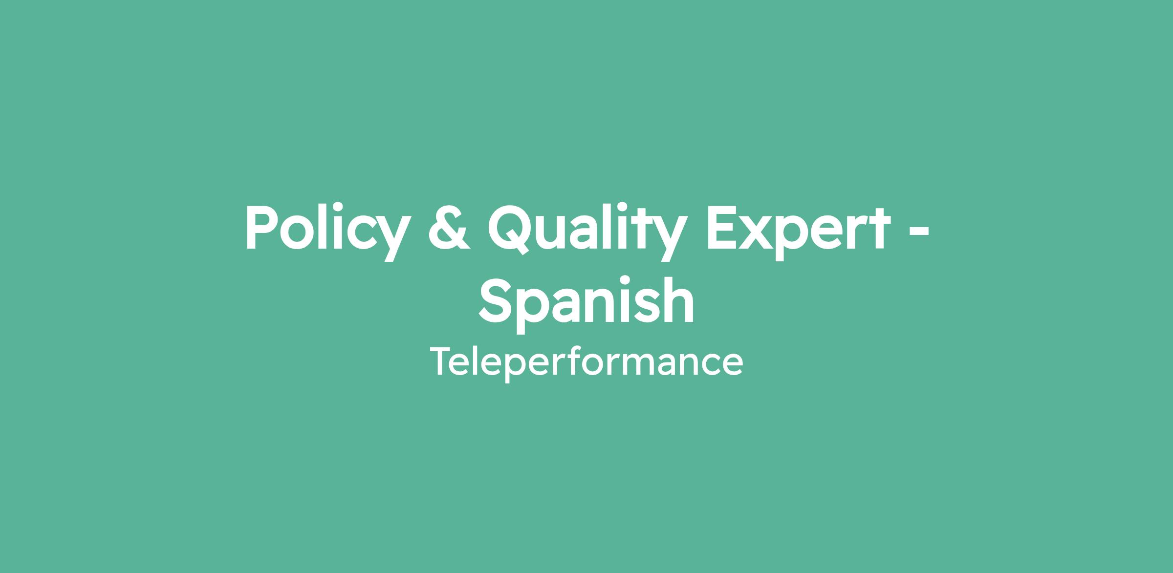 Quality & Policy Expert (Spanish Speaking)