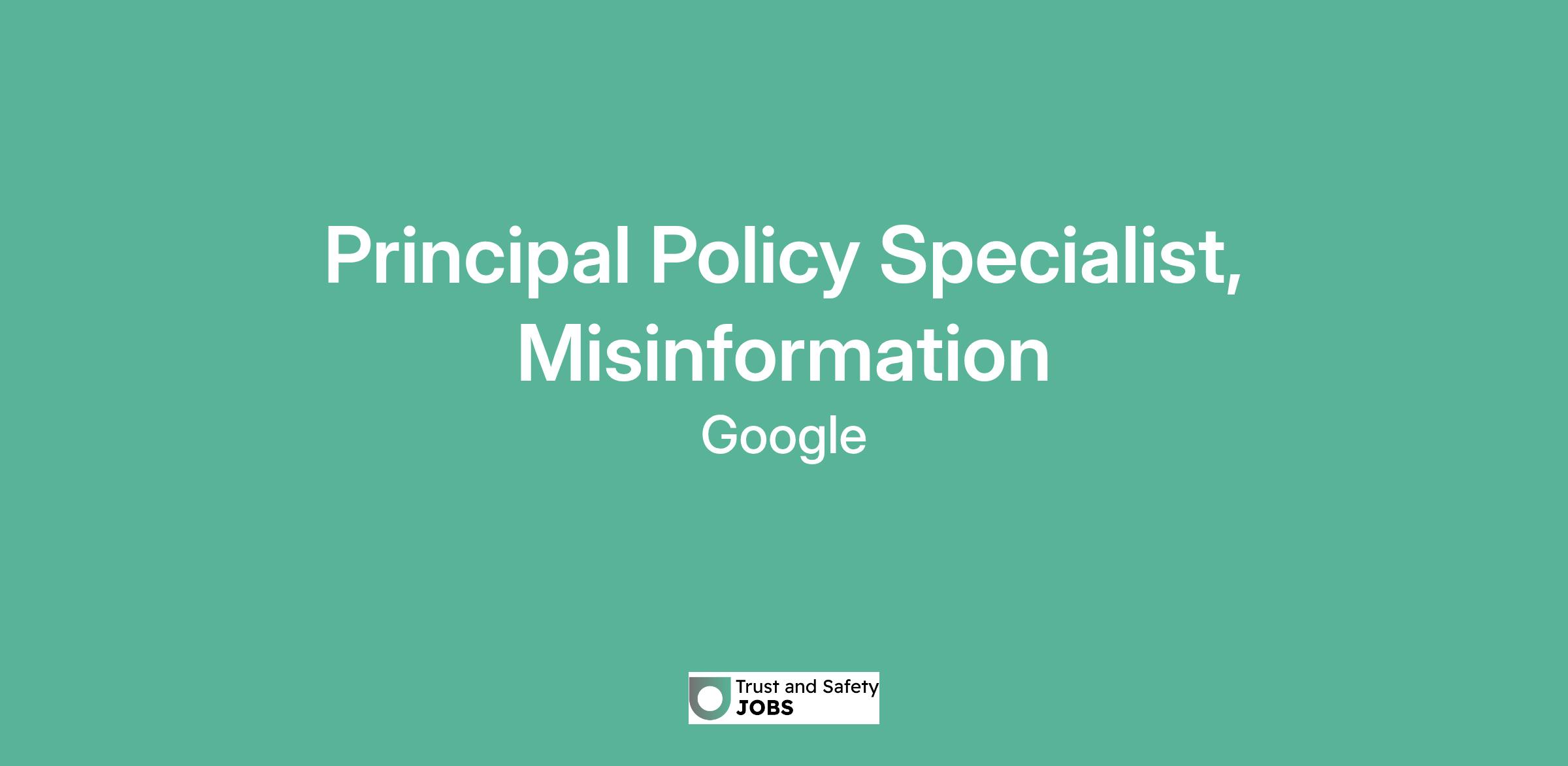 Principal Policy Specialist, Misinformation