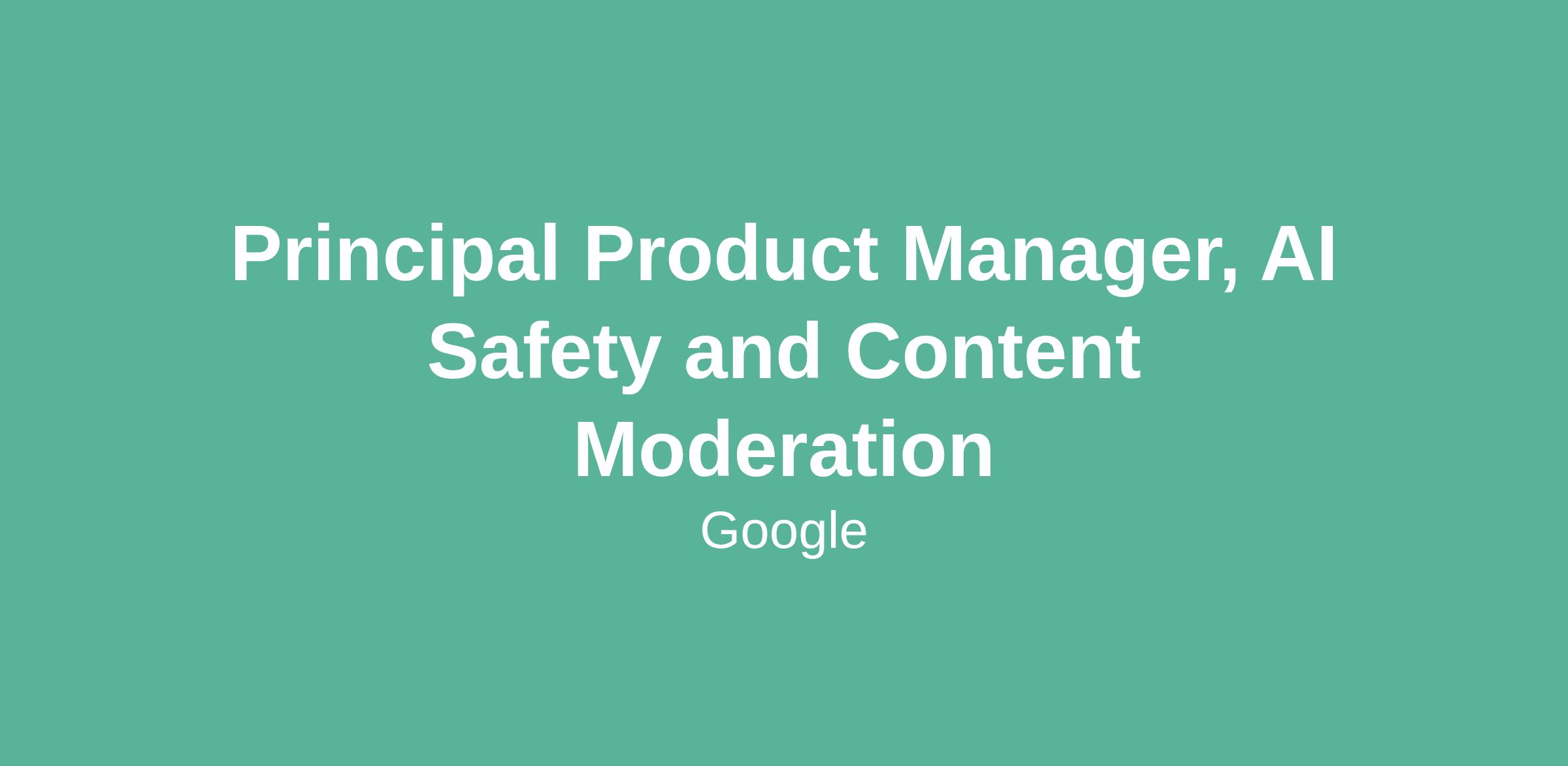 Principal Product Manager, AI Safety and Content Moderation