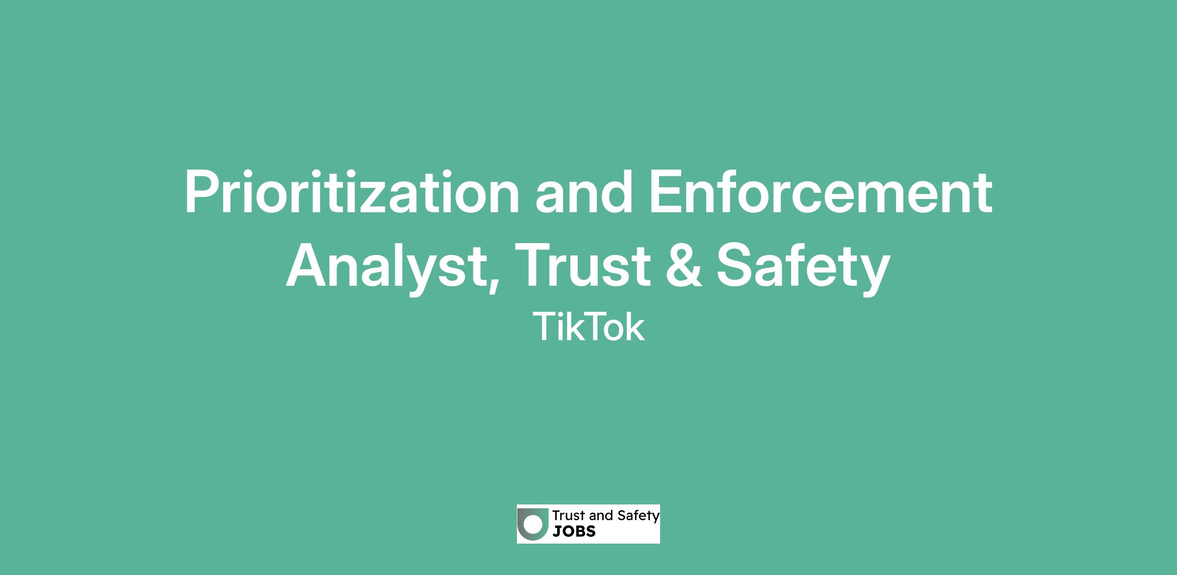 Prioritization and Enforcement Analyst, Trust & Safety