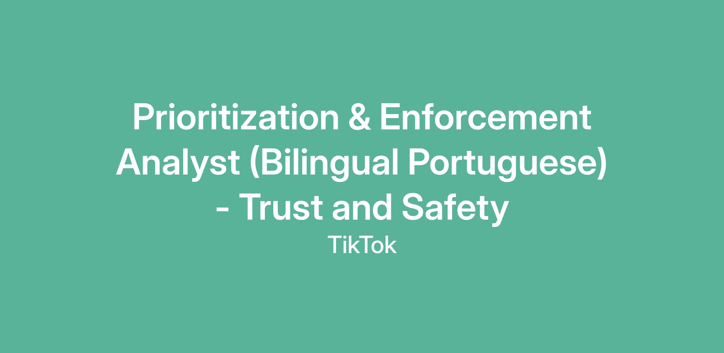 Prioritization & Enforcement Analyst (Bilingual Portuguese) - Trust and Safety