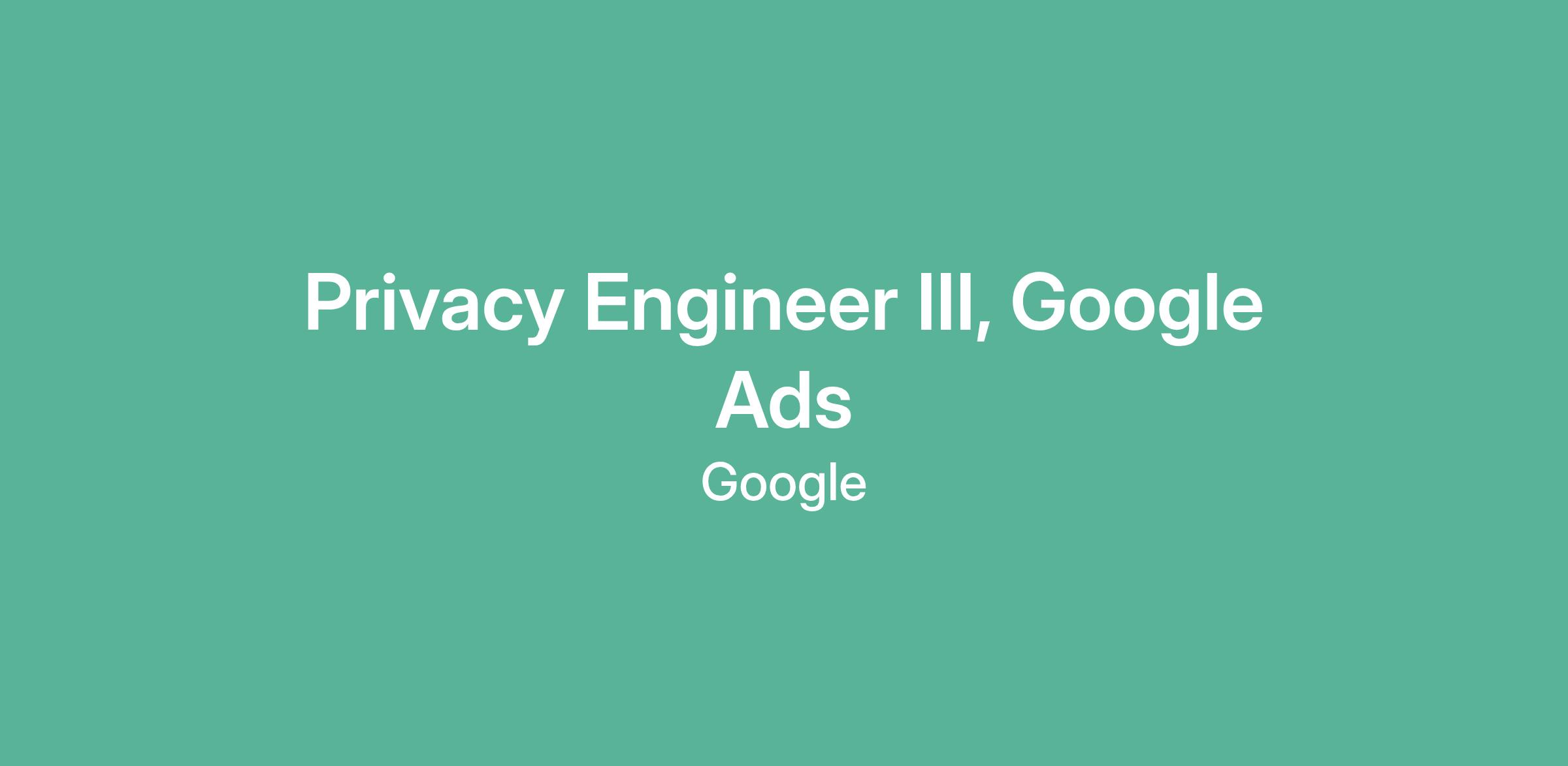 Privacy Engineer III, Google Ads