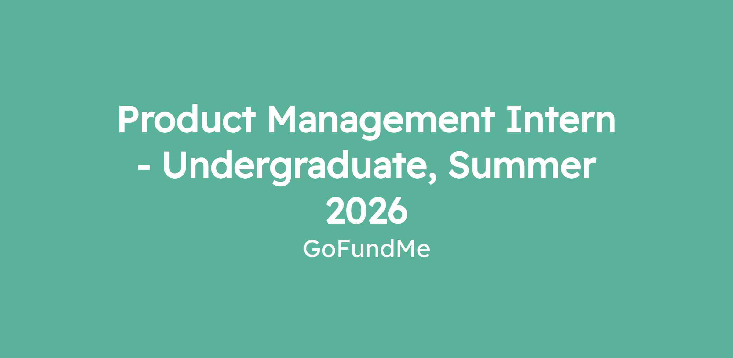 Join us! The GoFundMe team is searching for our next Product Management Intern who believes in the impact of GoFundMe and is passionate about our mission to help people help others. We value Accountability, Bias to Action, Curiosity and investment in shared successes. We know that a broad range of perspectives, diverse backgrounds and experiences, help us to create the best possible product.