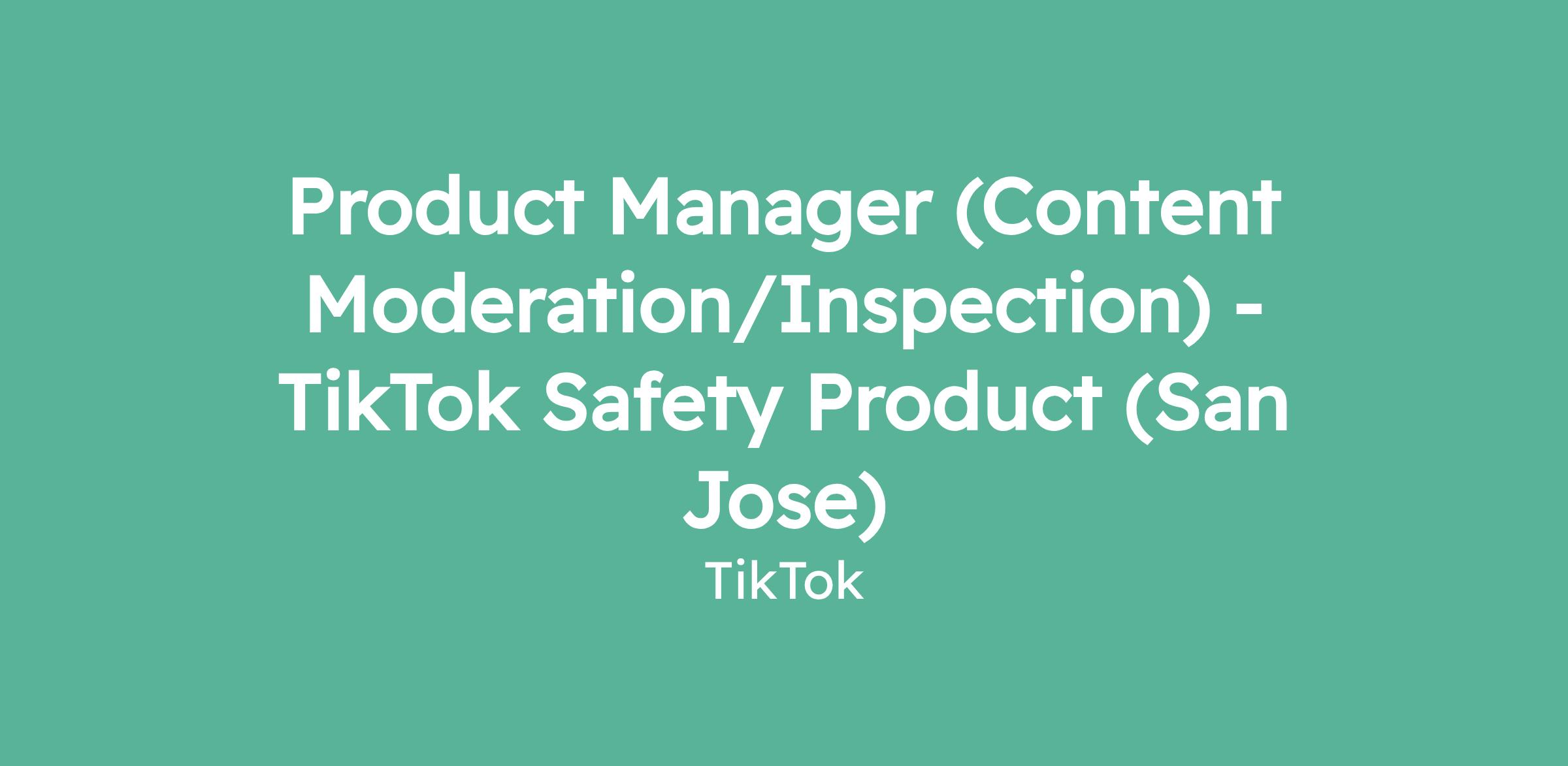 Product Manager (Content Moderation/Inspection) - TikTok Safety Product (San Jose)