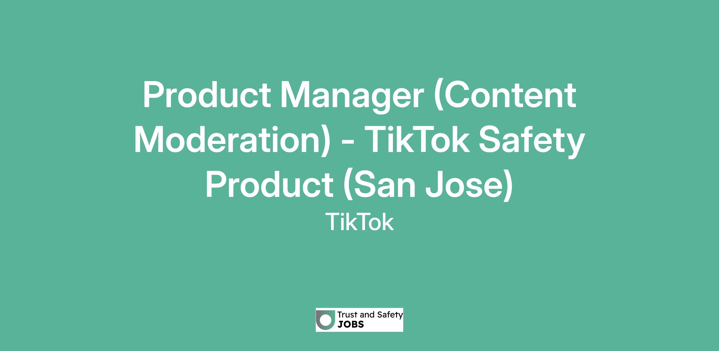 Product Manager (Content Moderation) - TikTok Safety Product (San Jose)