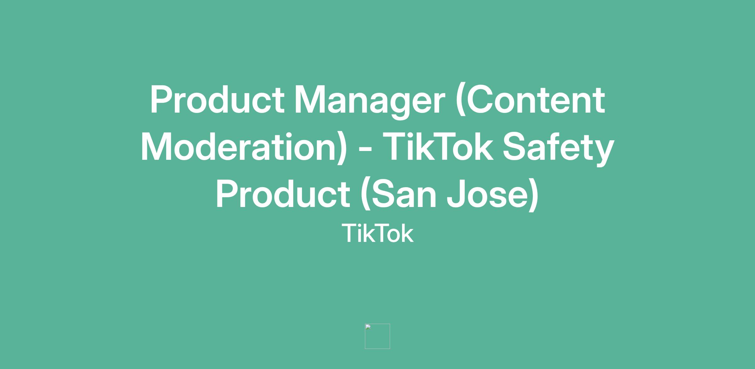 Product Manager (Content Moderation) - TikTok Safety Product (San Jose)