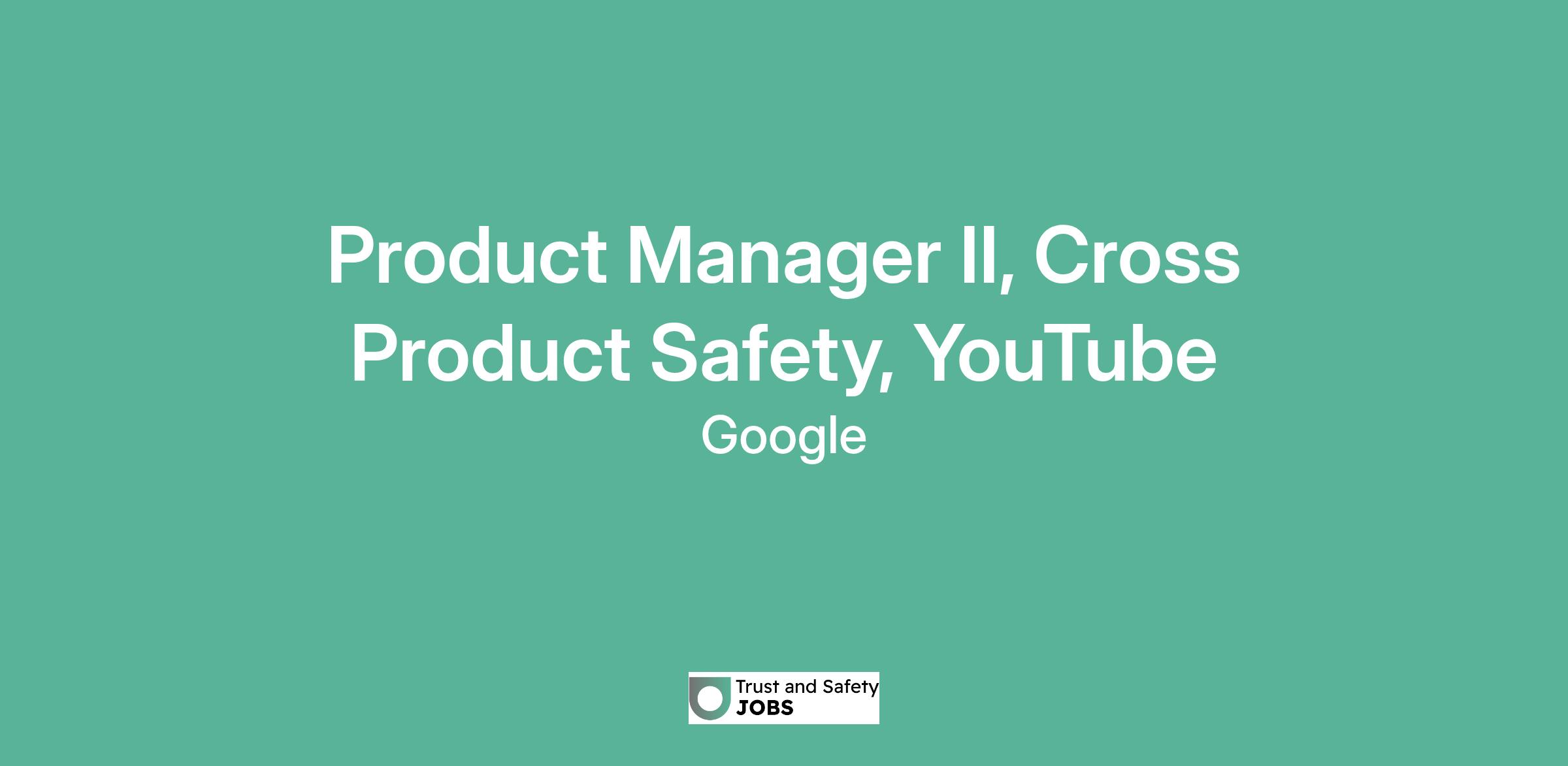 Product Manager II, Cross Product Safety, YouTube