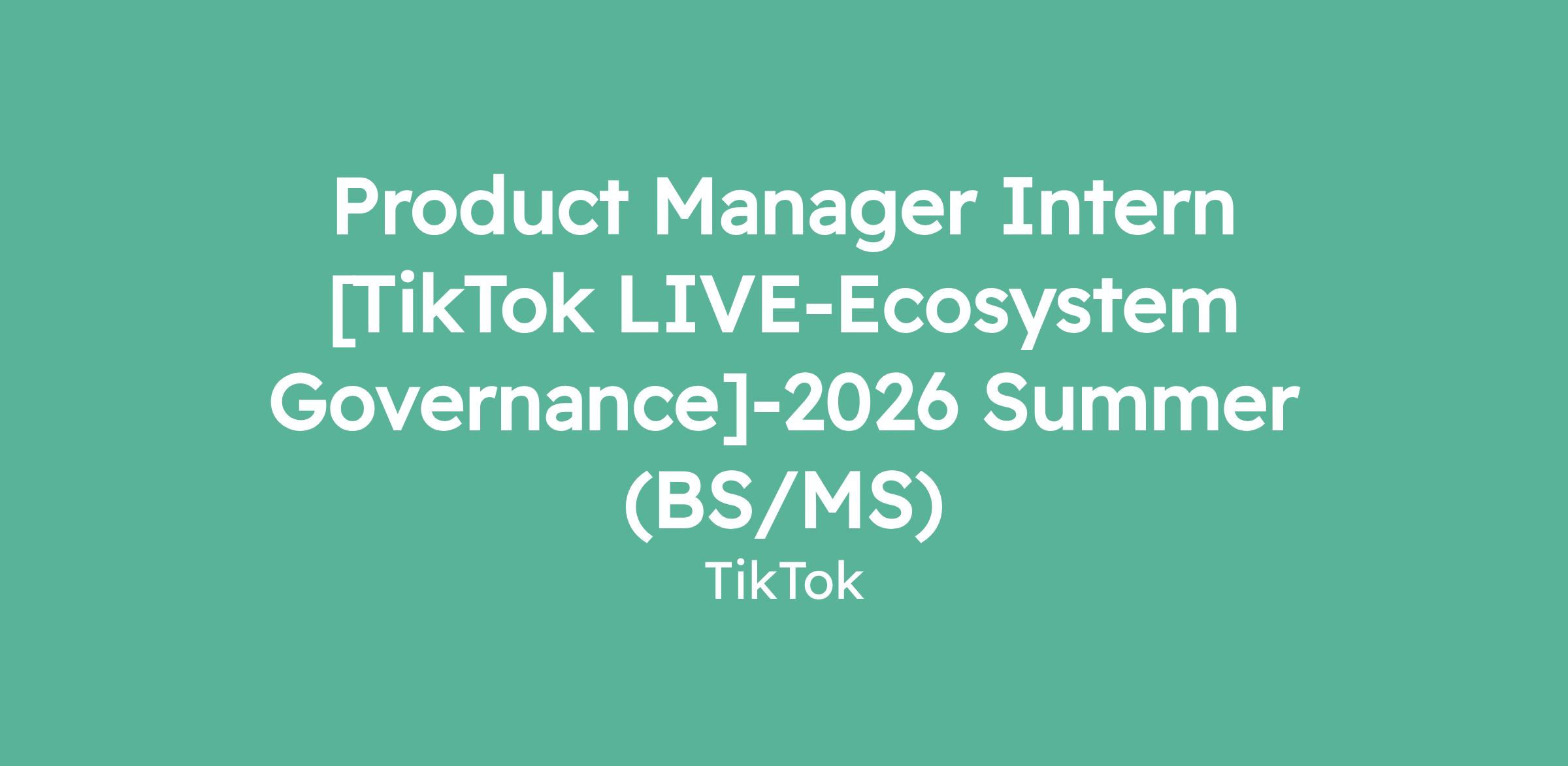 Product Manager Intern [TikTok LIVE-Ecosystem Governance]-2026 Summer (BS/MS)