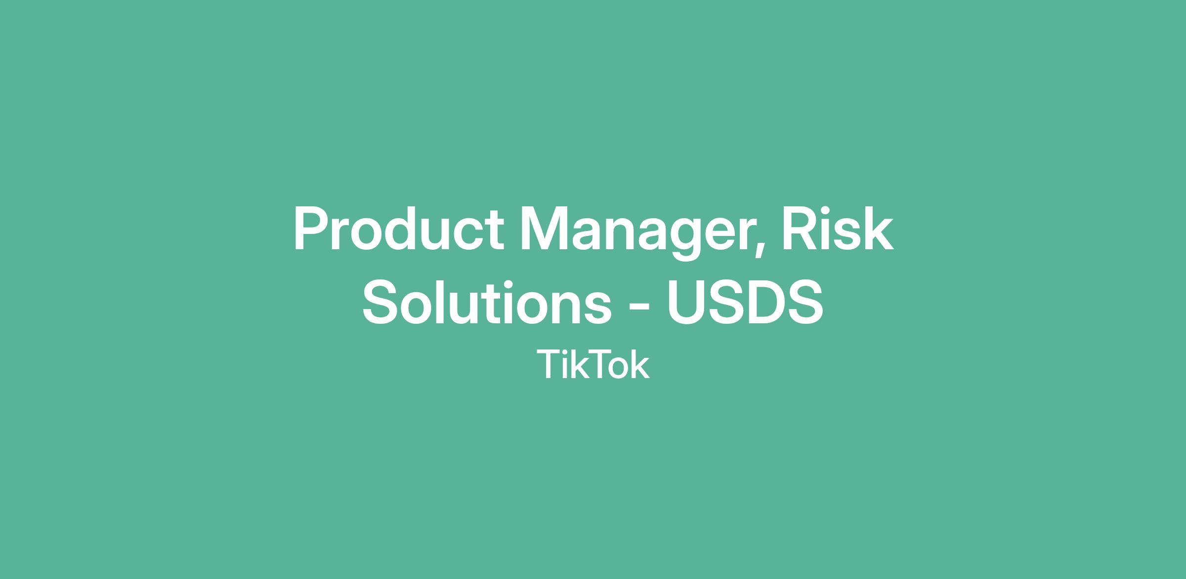 Product Manager, Risk Solutions - USDS