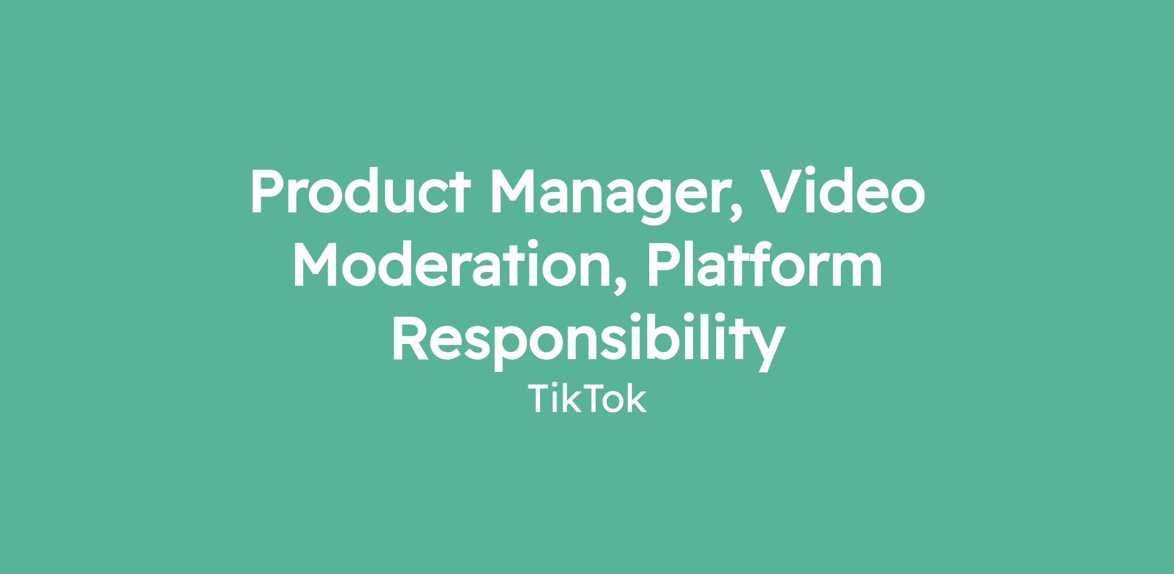 Product Manager, Video Moderation, Platform Responsibility