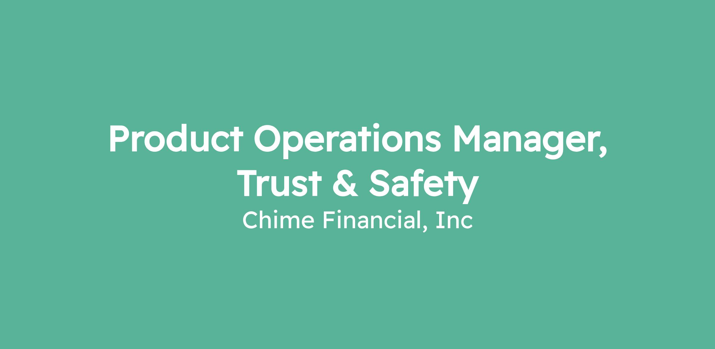 Chime is seeking a Product Operations Manager to support our Trust & Safety organization. This role is critical to powering risk mitigation and decision-making across Chime’s products and services by managing complex technical implementations, data flows, and external partnerships.