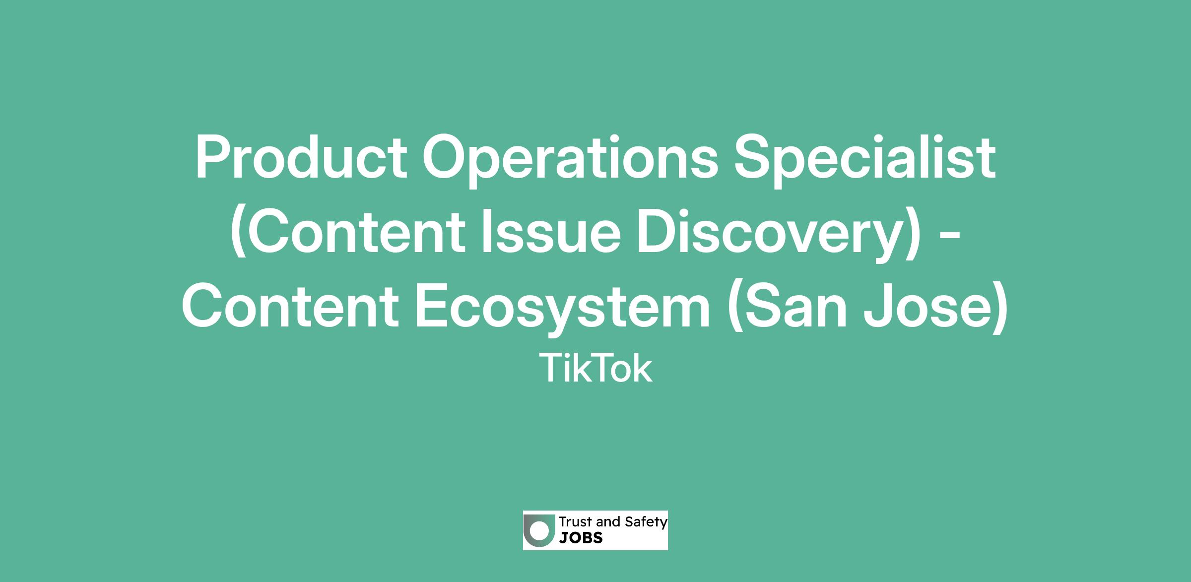 Product Operations Specialist (Content Issue Discovery) - Content Ecosystem (San Jose)