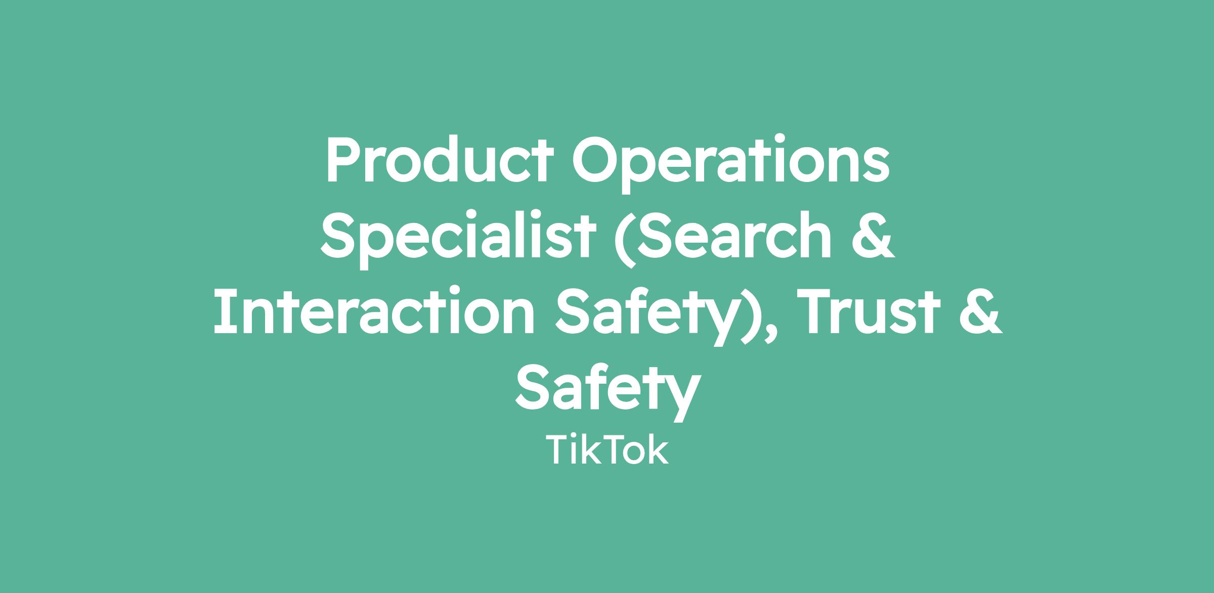 Product Operations Specialist (Search & Interaction Safety), Trust & Safety