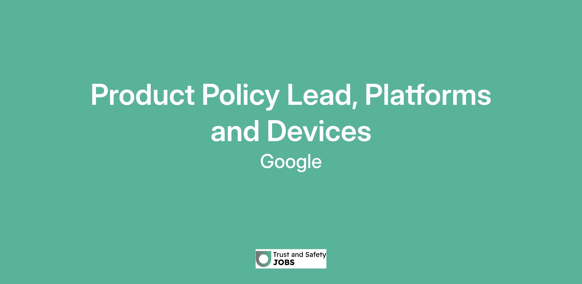 Product Policy Lead, Platforms and Devices