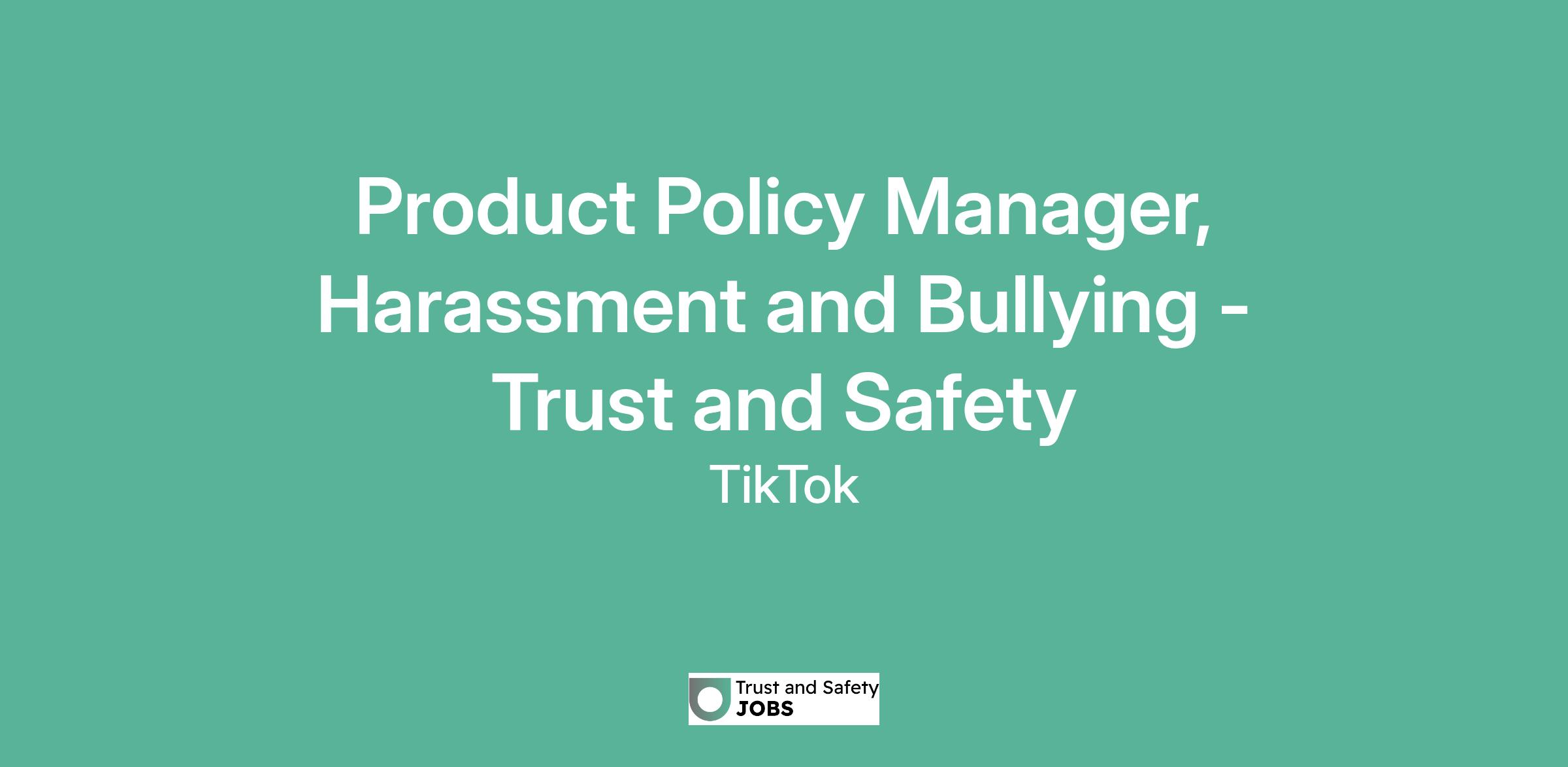 Product Policy Manager, Harassment and Bullying - Trust and Safety