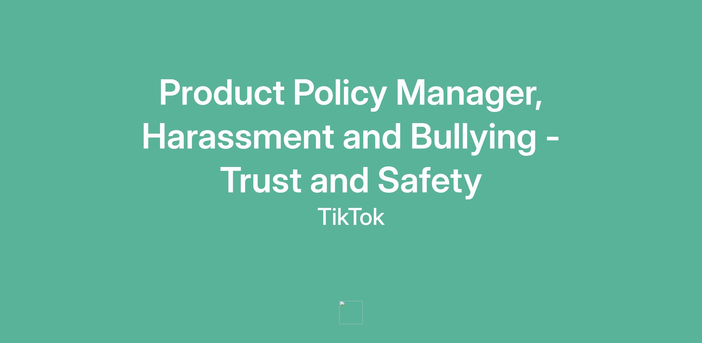 Product Policy Manager, Harassment and Bullying - Trust and Safety