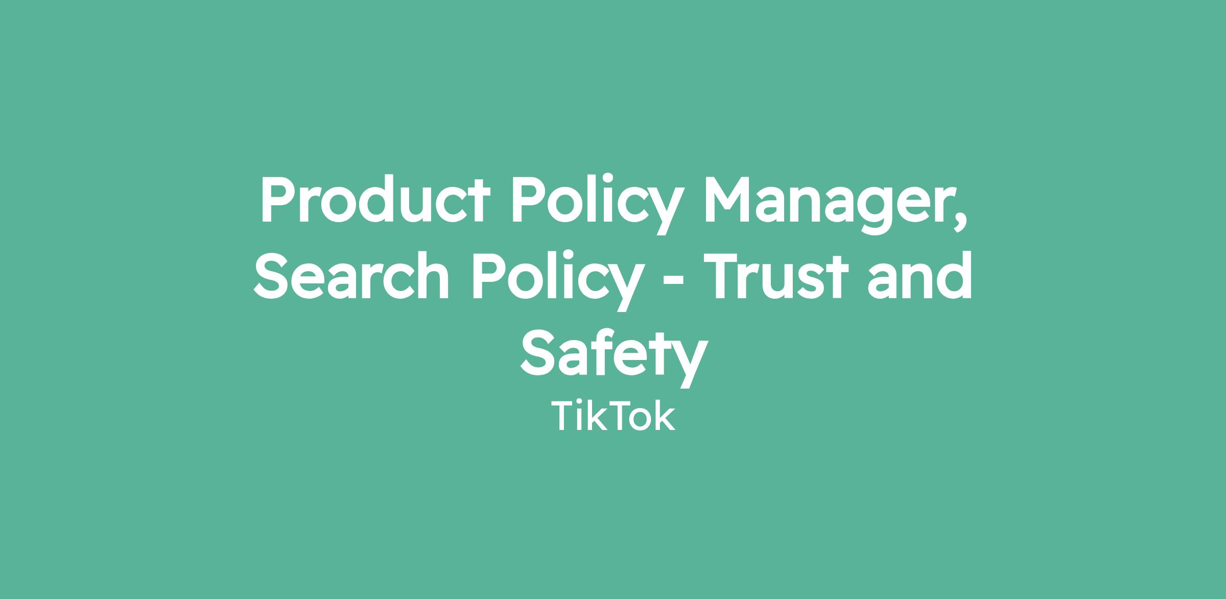 We are looking for a Product Policy Manager for this team. This person will play a critical role in shaping TikTok’s safety and editorial policies for a rapidly growing suite of TikTok Search products, ensuring they are defensible, clear, and consistently applied. You will be responsible for risk assessment, development of policies, and transparency requirements for new and emerging Search features. You will partner closely with product, enforcement, legal, and business teams, and provide thought leadership on complex and cross-cutting issues. This role is highly strategic and hands-on, requiring the ability to manage both immediate priorities and long-term frameworks.