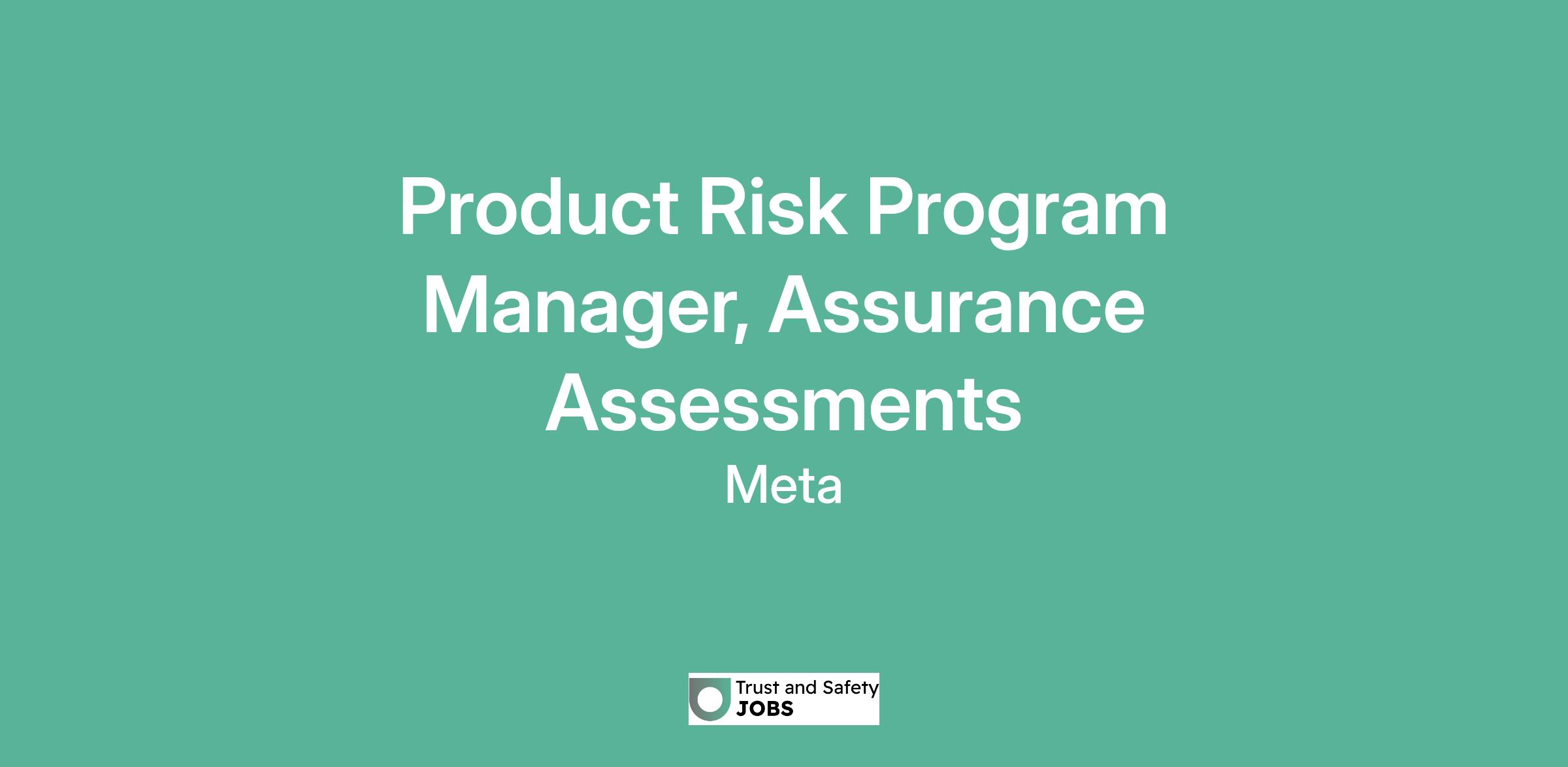 Product Risk Program Manager, Assurance Assessments