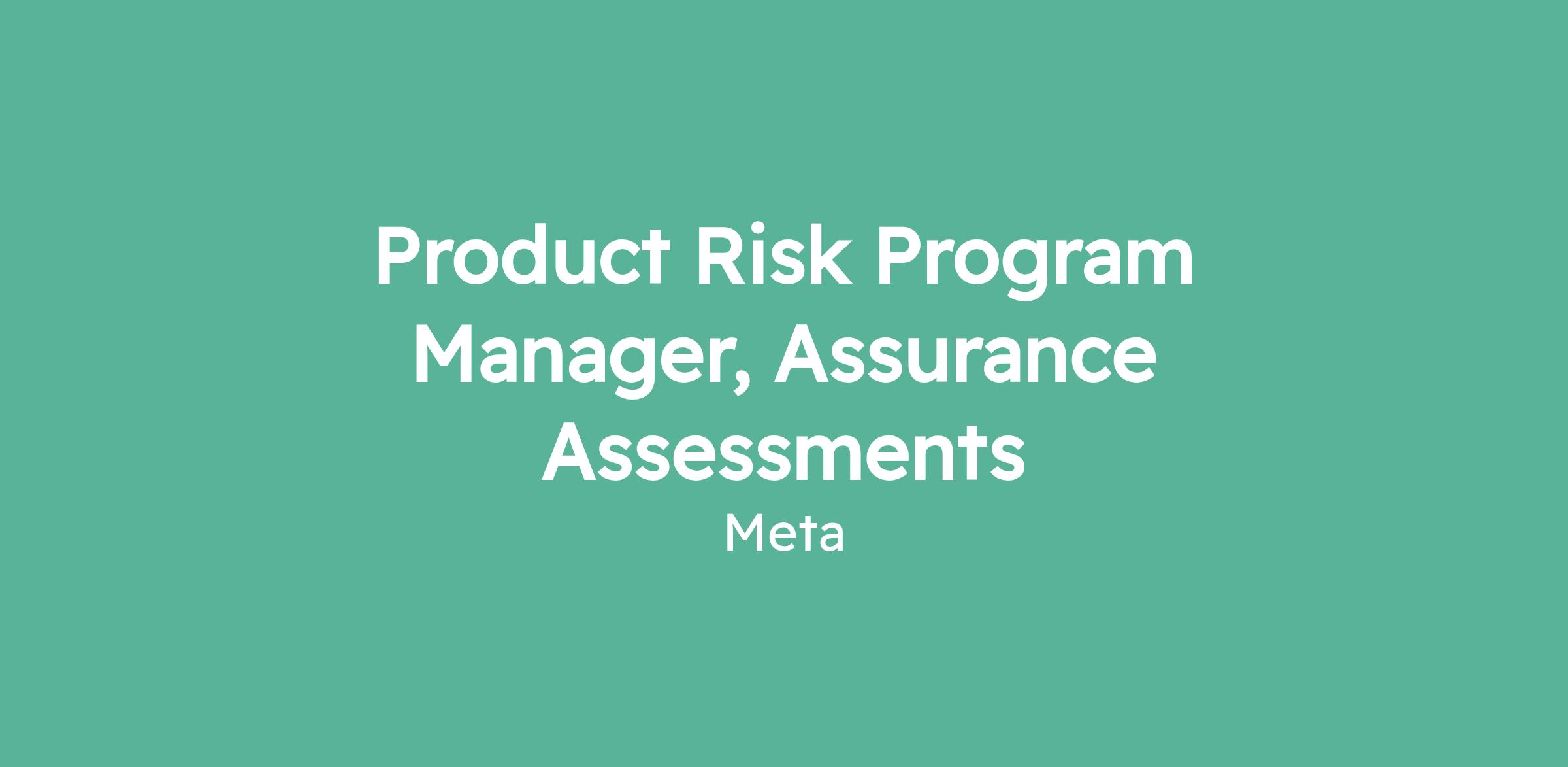 Product Risk Program Manager, Assurance Assessments