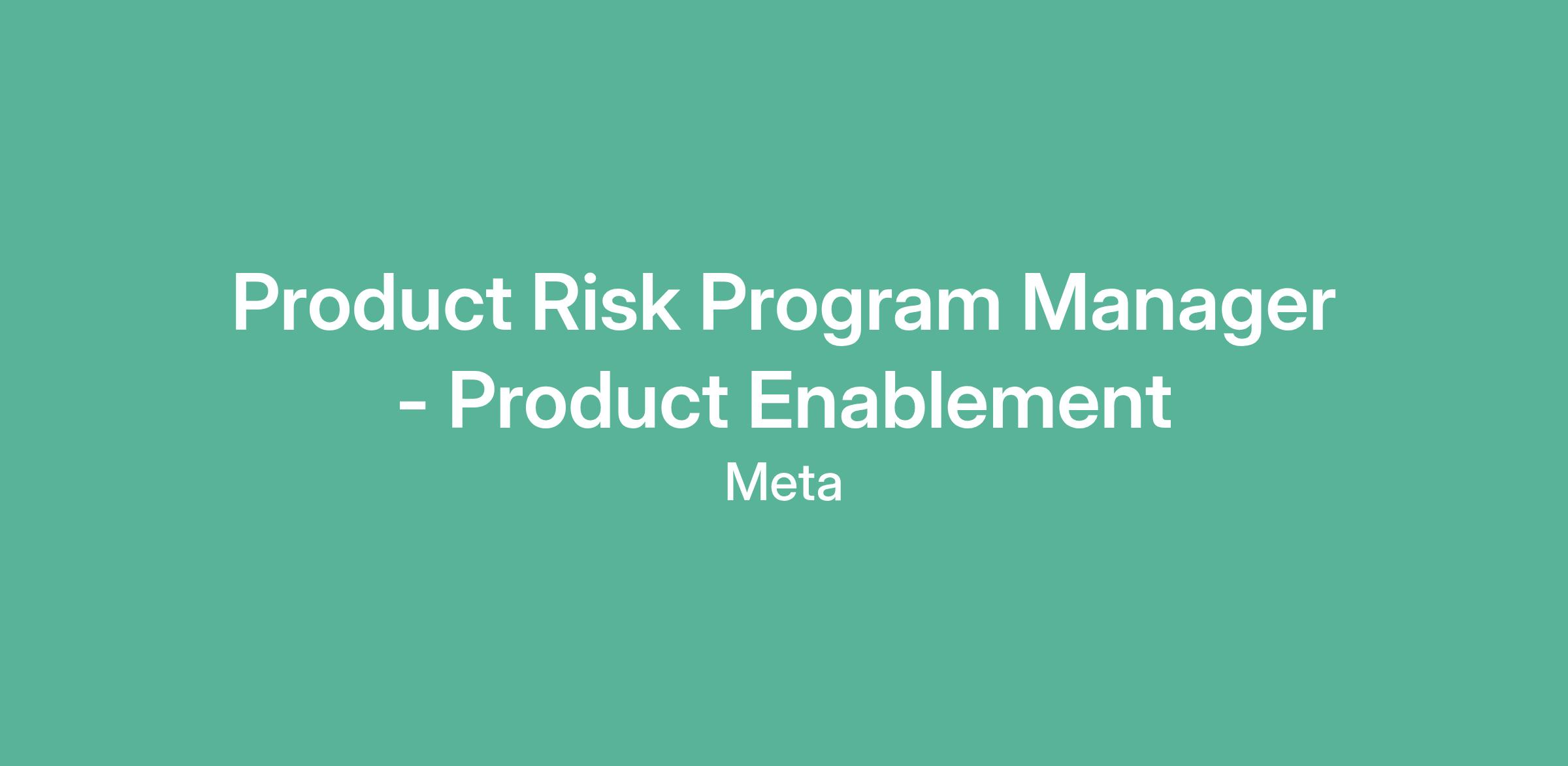 Product Risk Program Manager - Product Enablement