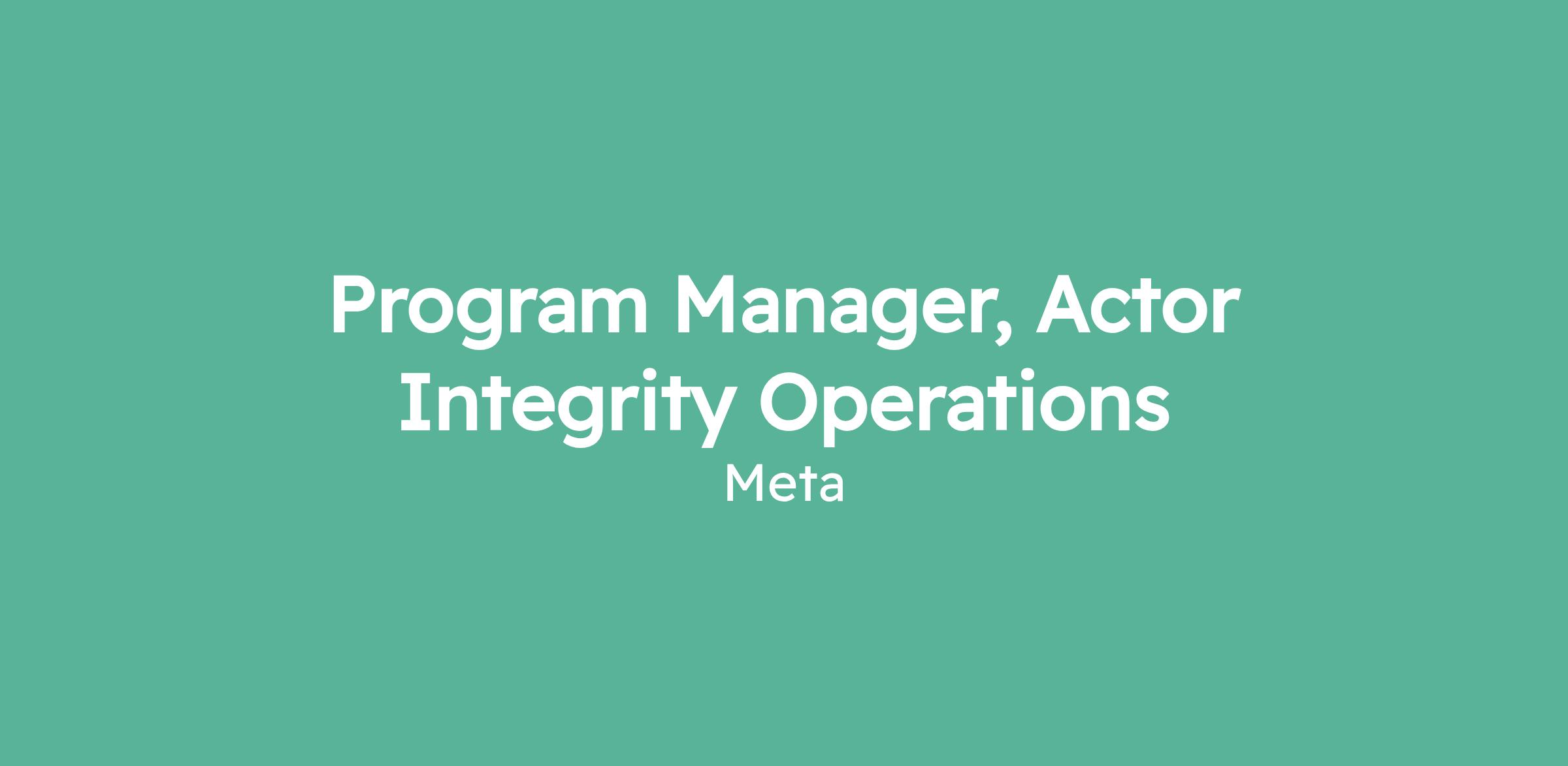 Program Manager, Actor Integrity Operations