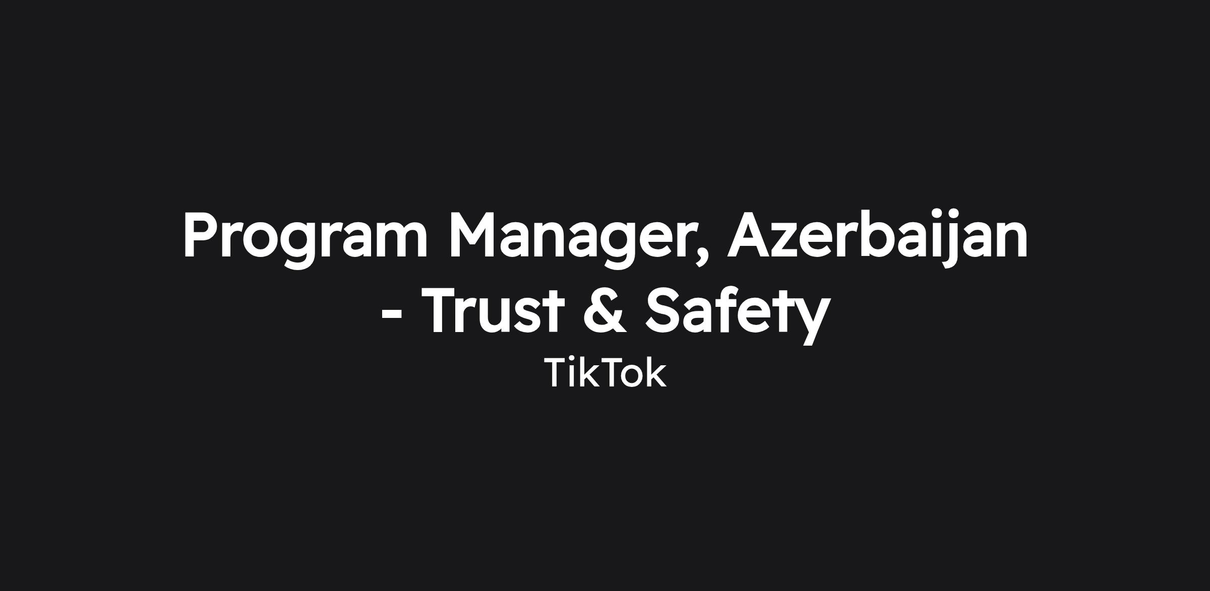 Program Manager, Azerbaijan - Trust & Safety