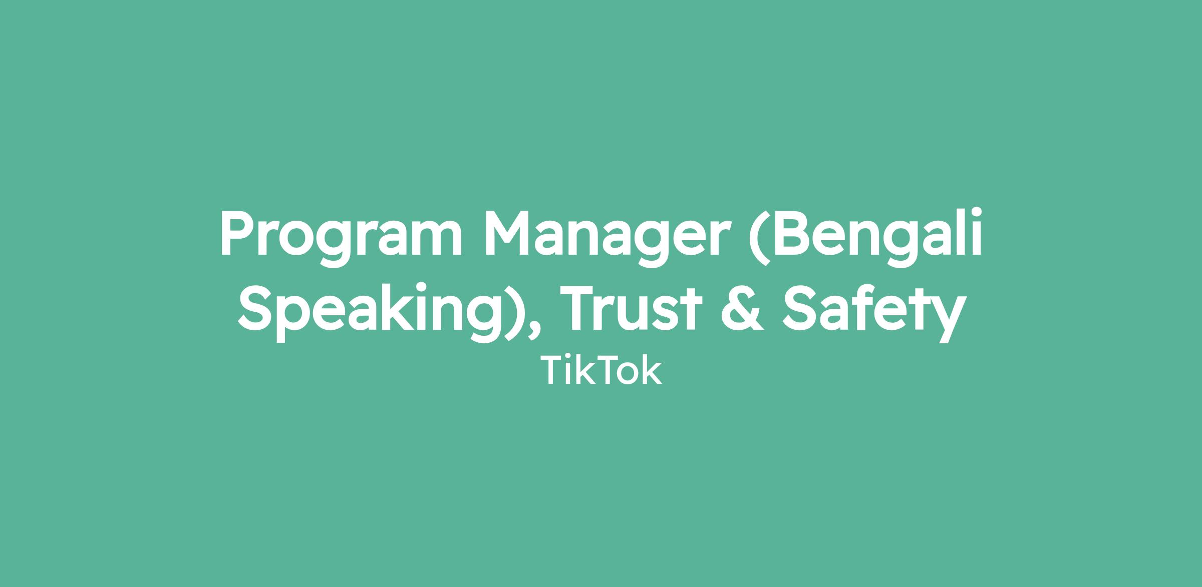 Program Manager (Bengali Speaking), Trust & Safety