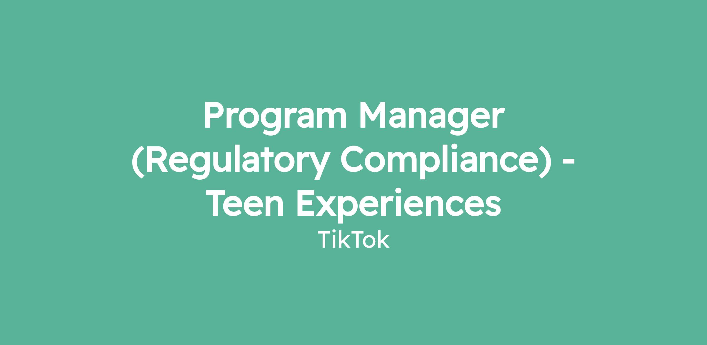 Program Manager (Regulatory Compliance) - Teen Experiences