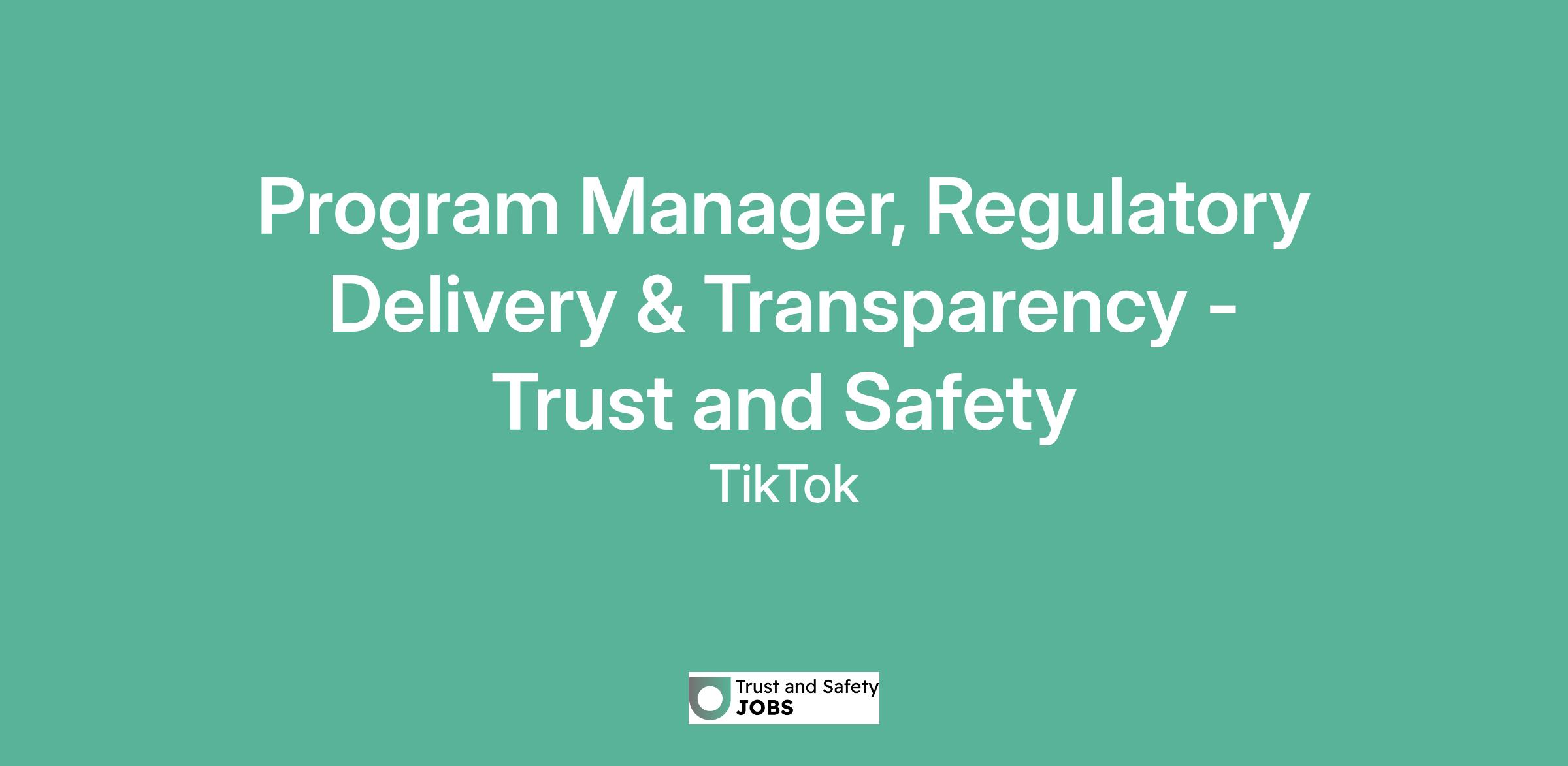 Program Manager, Regulatory Delivery & Transparency - Trust and Safety