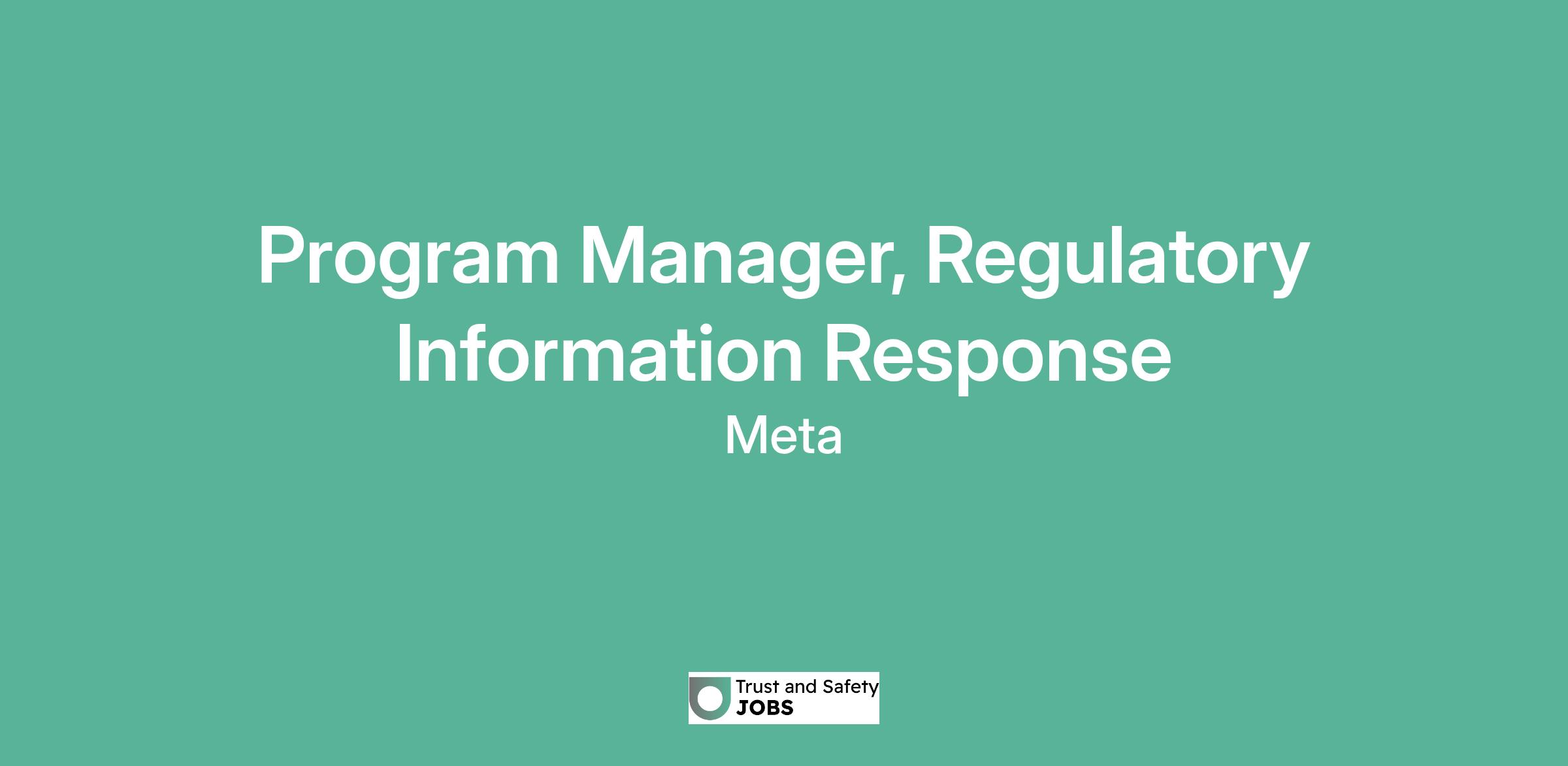 Program Manager, Regulatory Information Response