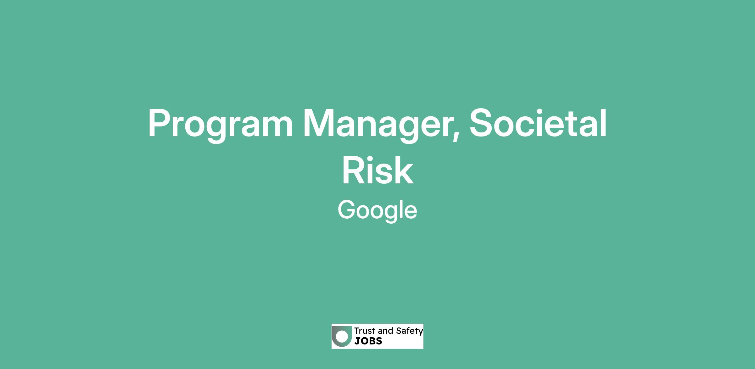 As a Societal Risk Program Manager, you will be instrumental in designing, implementing, and scaling our global societal risk program. This role requires you to support the execution of risk assessments across a wide range of products and functions including regulatory affairs, product areas, and trust and safety. You will bring a results-oriented mindset to the team, applying your ability to solve issues and sharp attention to detail to ensure program leadership and goal achievement.At Google we work hard to earn our users’ trust every day. Trust & Safety is Google’s team of abuse fighting and user trust experts working daily to make the internet a safer place. We partner with teams across Google to deliver bold solutions in abuse areas such as malware, spam and account hijacking. A team of Analysts, Policy Specialists, Engineers, and Program Managers, we work to reduce risk and fight abuse across all of Google’s products, protecting our users, advertisers, and publishers across the globe in over 40 languages.