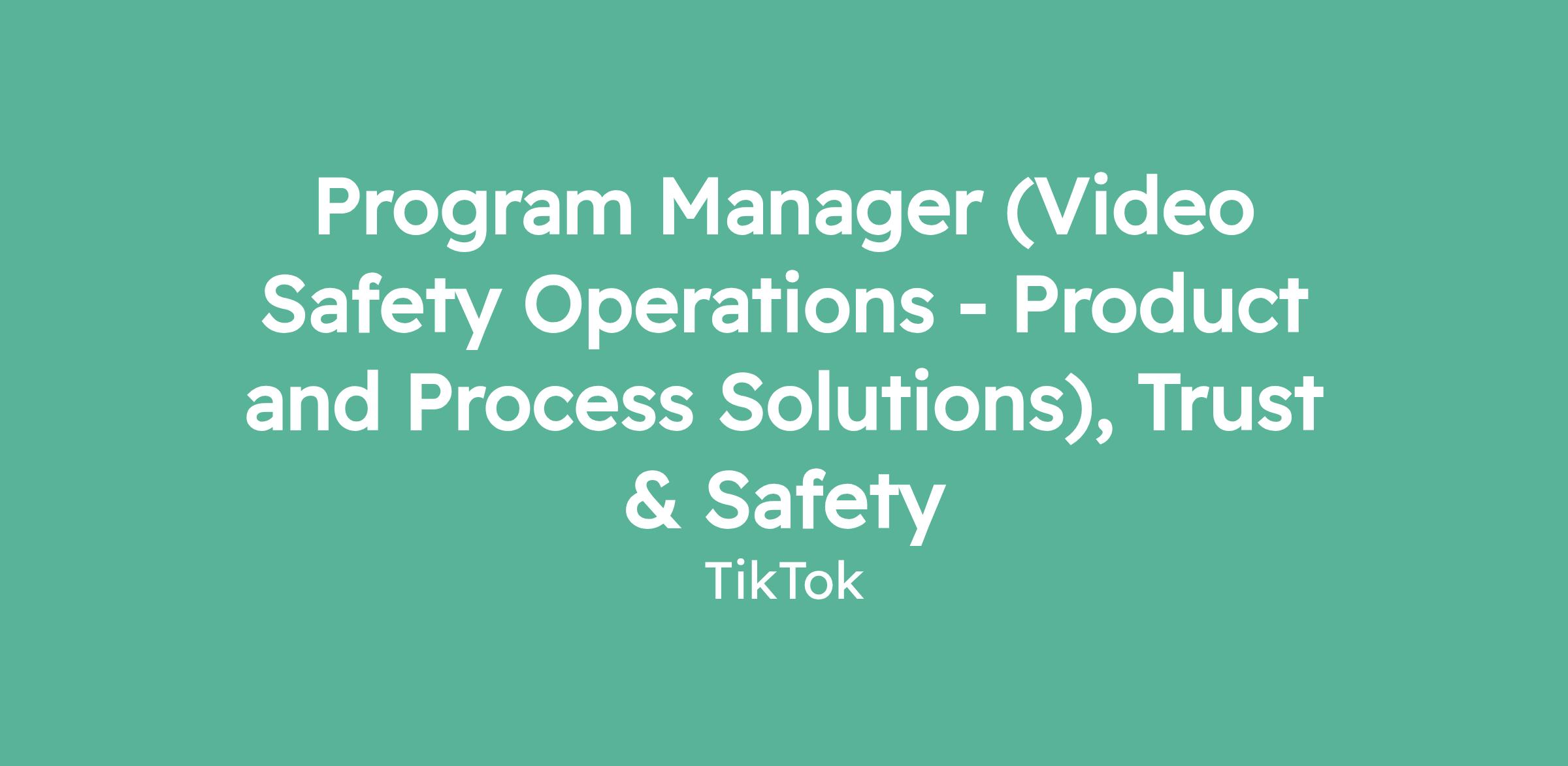 Program Manager (Video Safety Operations - Product and Process Solutions), Trust & Safety
