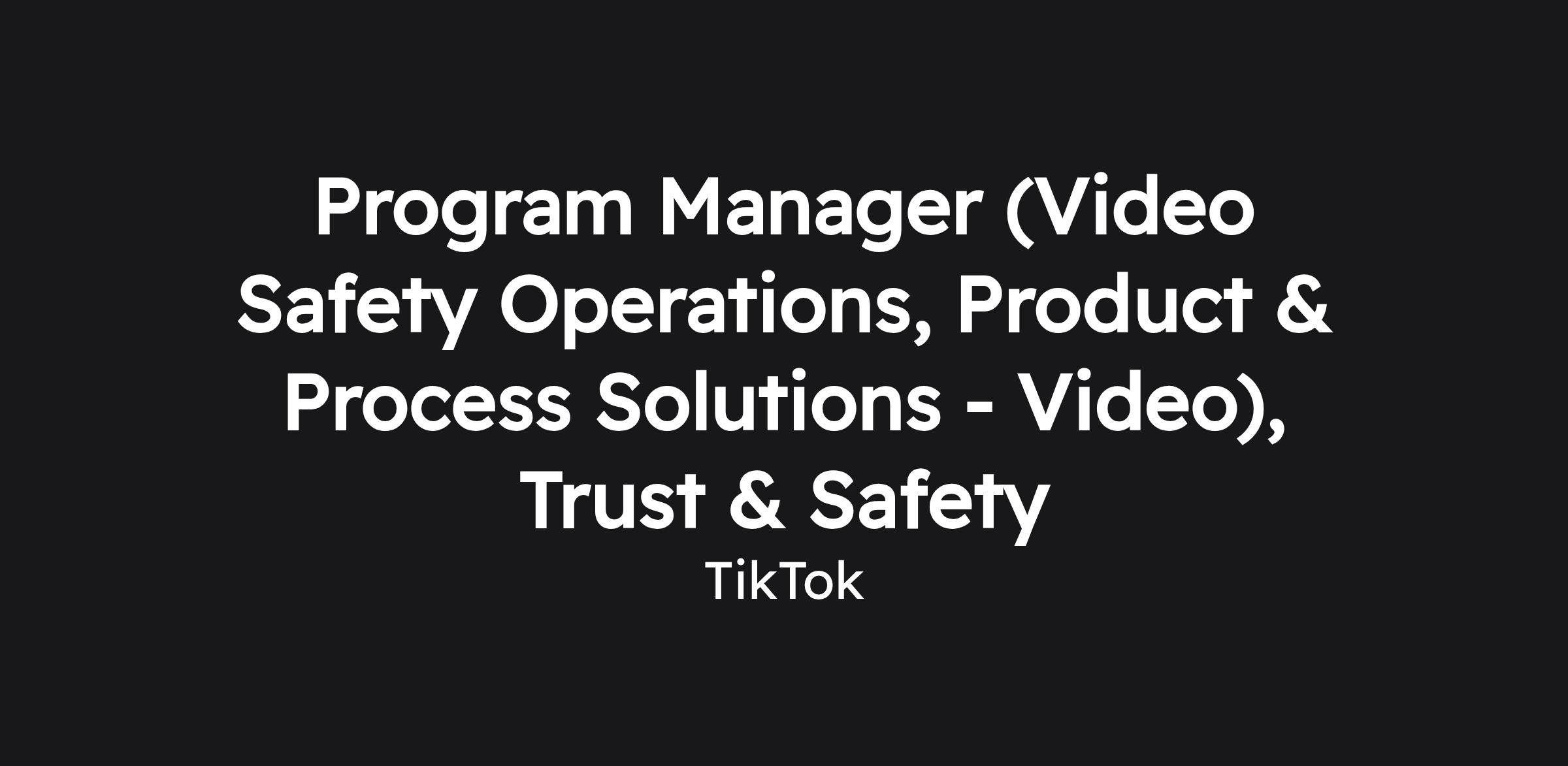 Program Manager (Video Safety Operations, Product & Process Solutions - Video), Trust & Safety