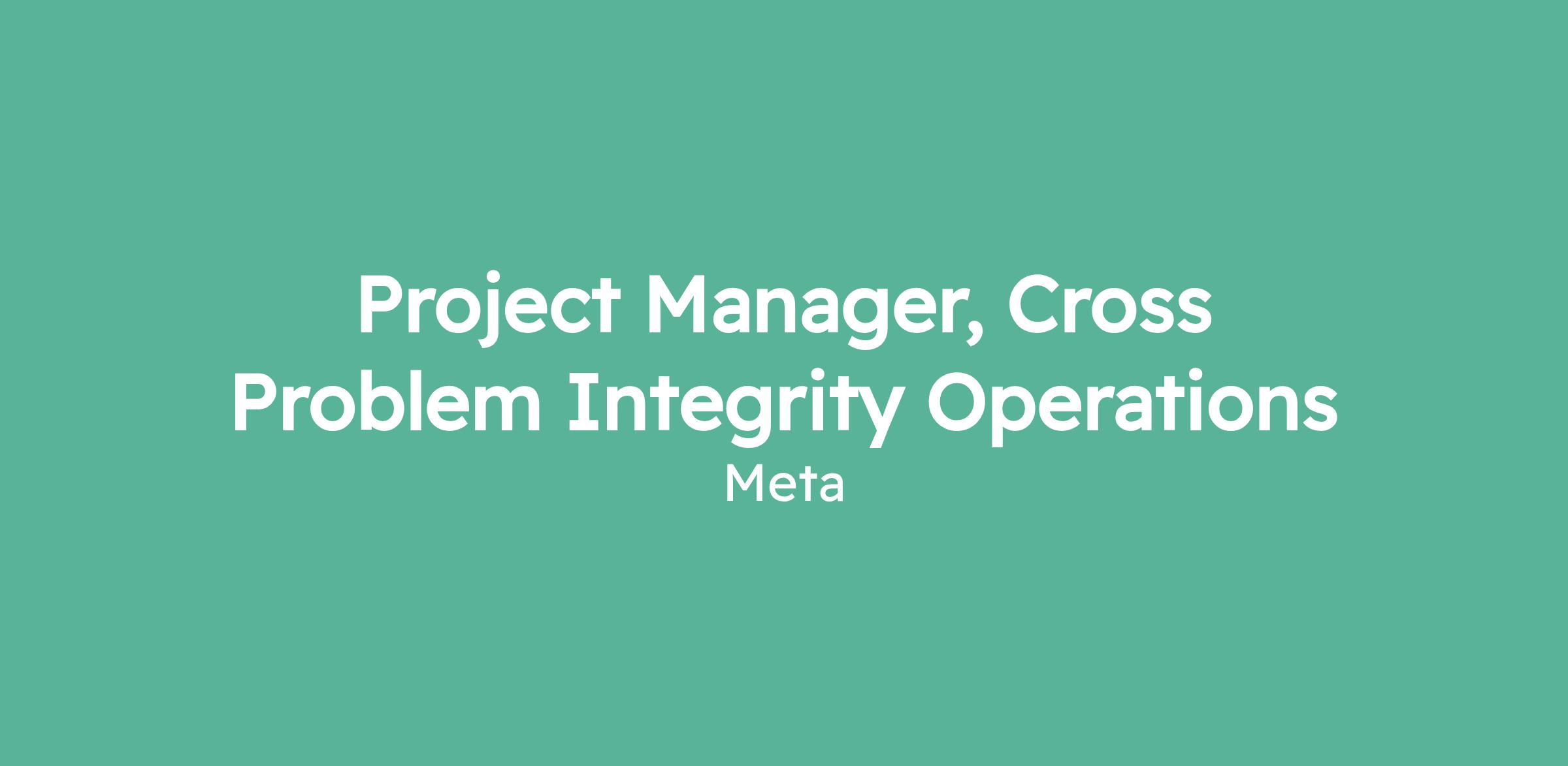 Project Manager, Cross Problem Integrity Operations