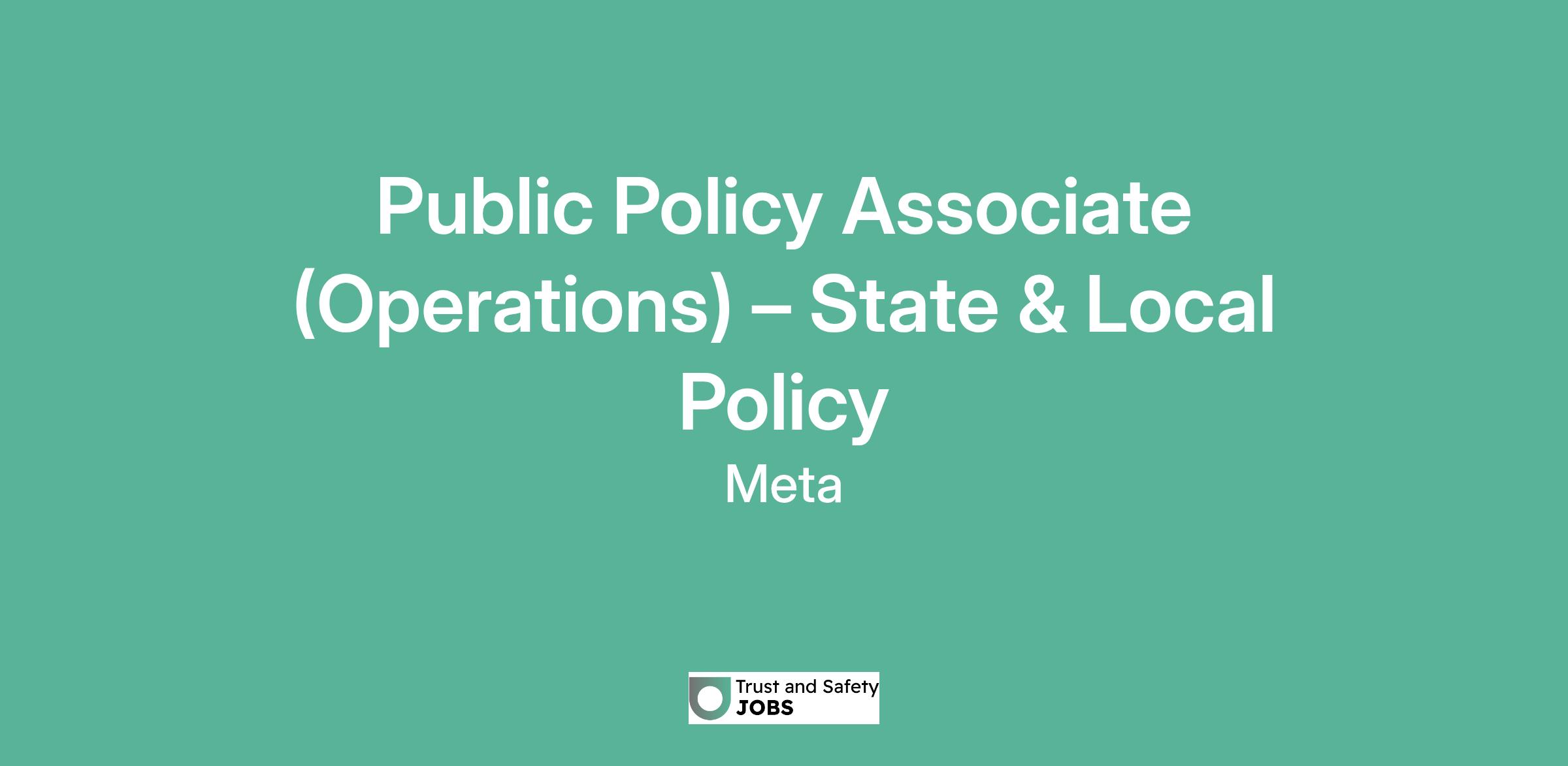 Public Policy Associate (Operations) – State & Local Policy