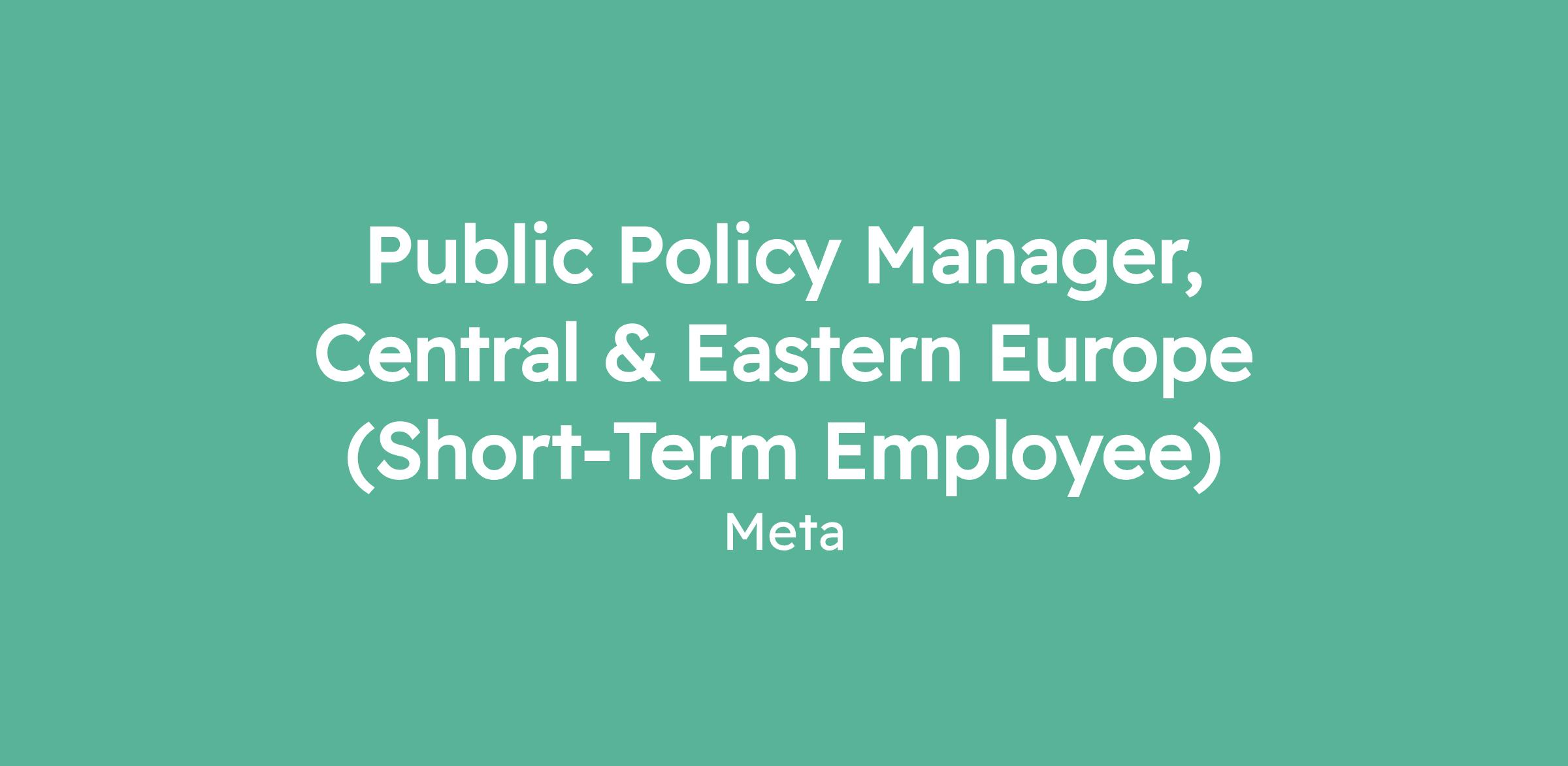 We are seeking a Short-Term Employee to provide secondment cover for the Public Policy Manager, Central & Eastern Europe role. This position reports to the Director of Public Policy for Central and Eastern Europe and sits within the Central Europe (CE) Public Policy team. The role is primarily responsible for managing Meta's public policy engagement in Poland, with additional coverage of initiatives involving other Central & Eastern European markets as needed. You will work closely with the wider Europe Policy team, cross-functional partners, and external stakeholders to advance Meta's policy priorities, with a particular focus on the Polish market.