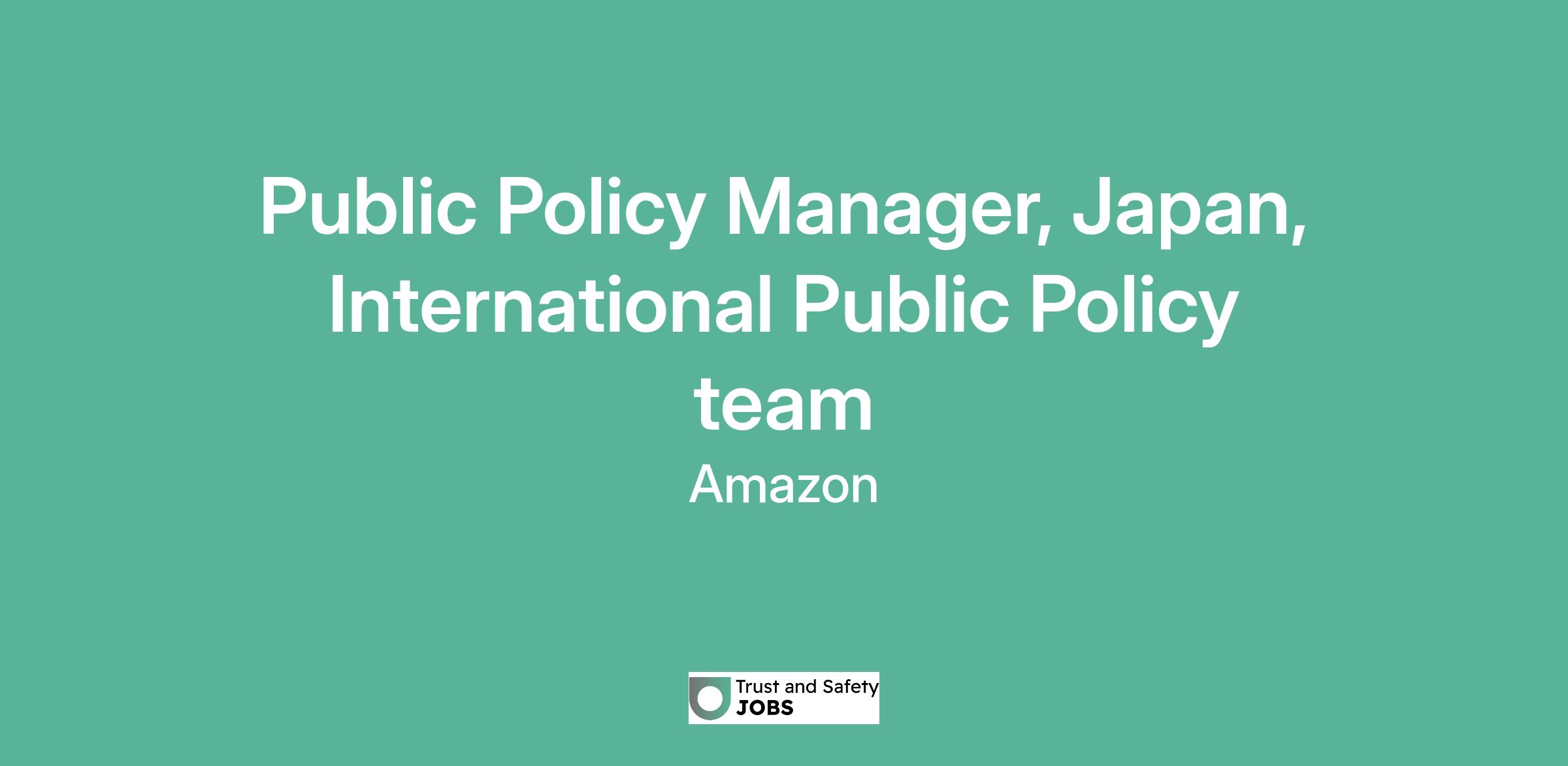 Public Policy Manager, Japan, International Public Policy team