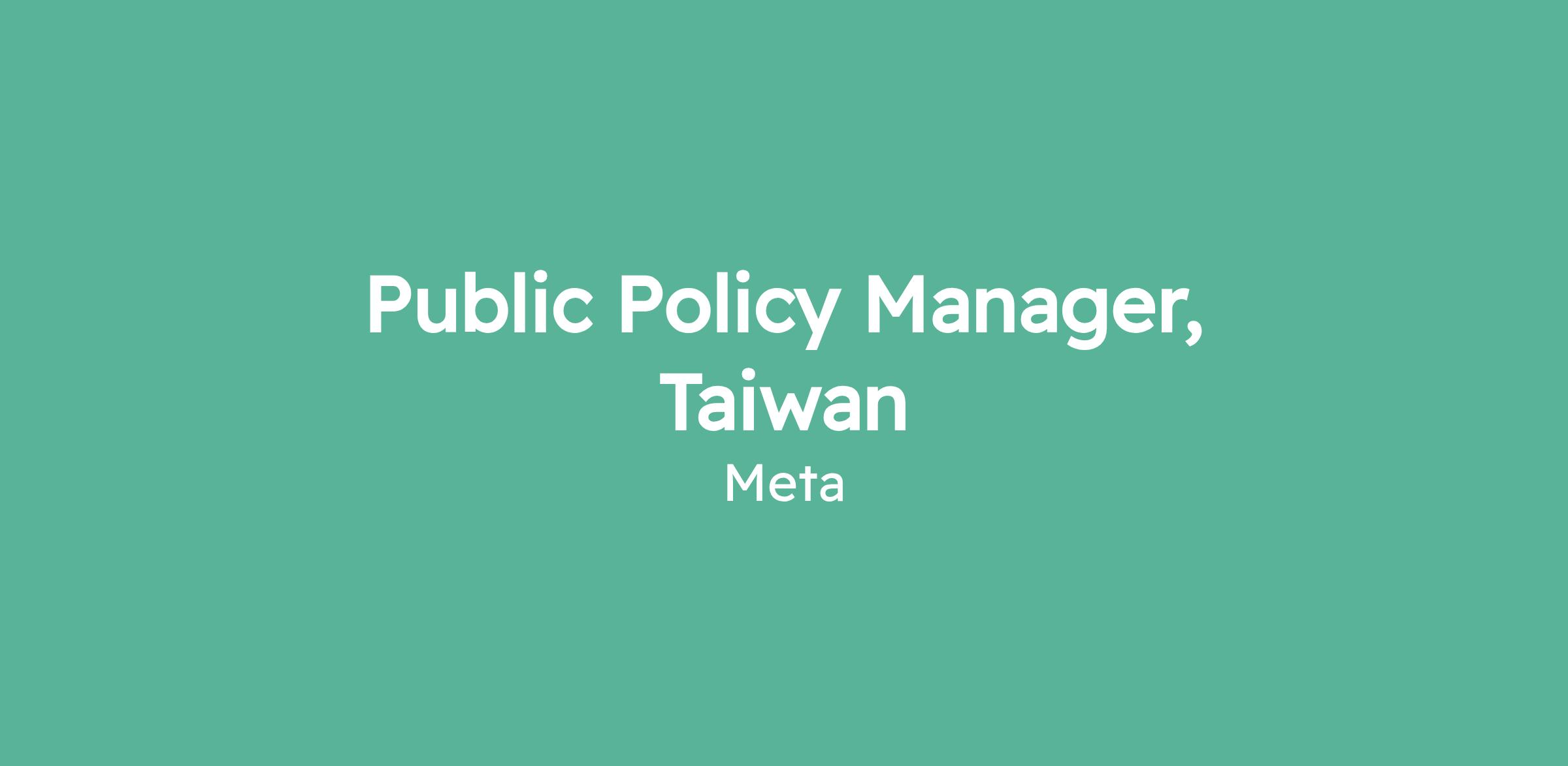 Public Policy Manager, Taiwan